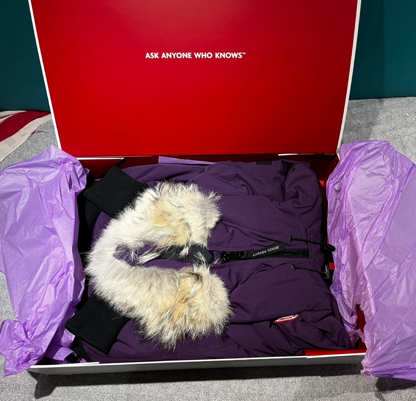 This the authentic thing. Rare Purple colour (Arctic Dusk) with Coyote Fur Trimmed Hood (non-detachable)