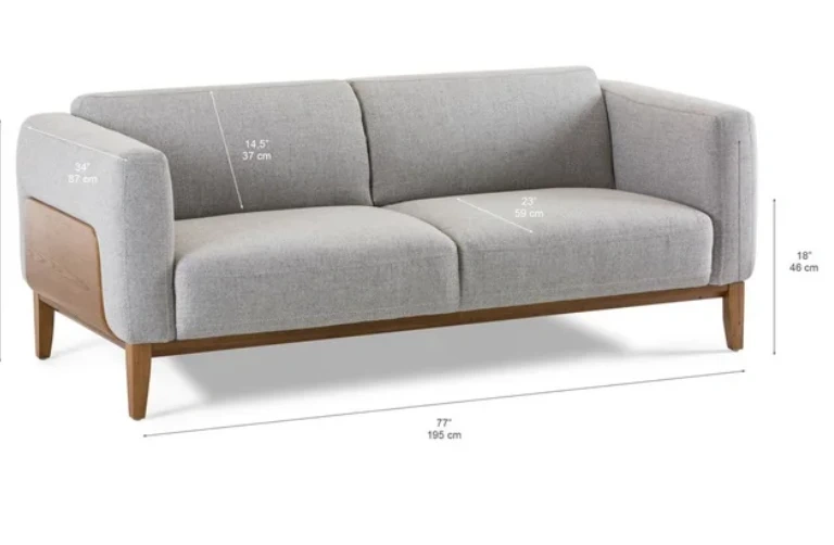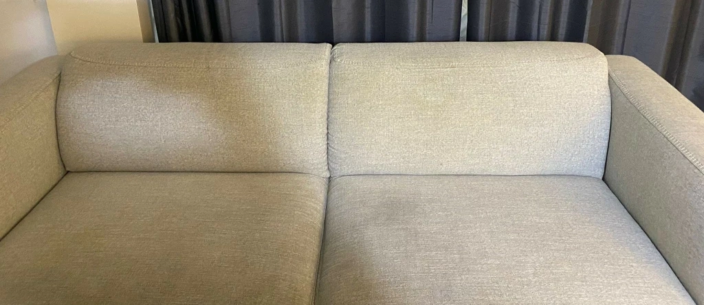 Selling a grey 3-seater, upholstered sofa from Structube. The sofa has a soft, comfortable fabric and offers an upright, comfortable support. Its timeless design is enhanced with modern birch legs.