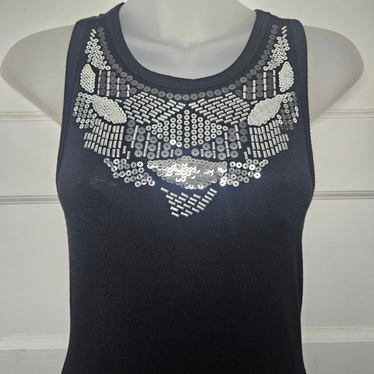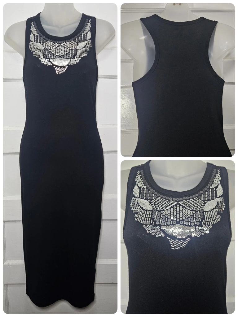 Express Black Midi Bodycon W/ Silver Sequin/Beaded Bib Sz S