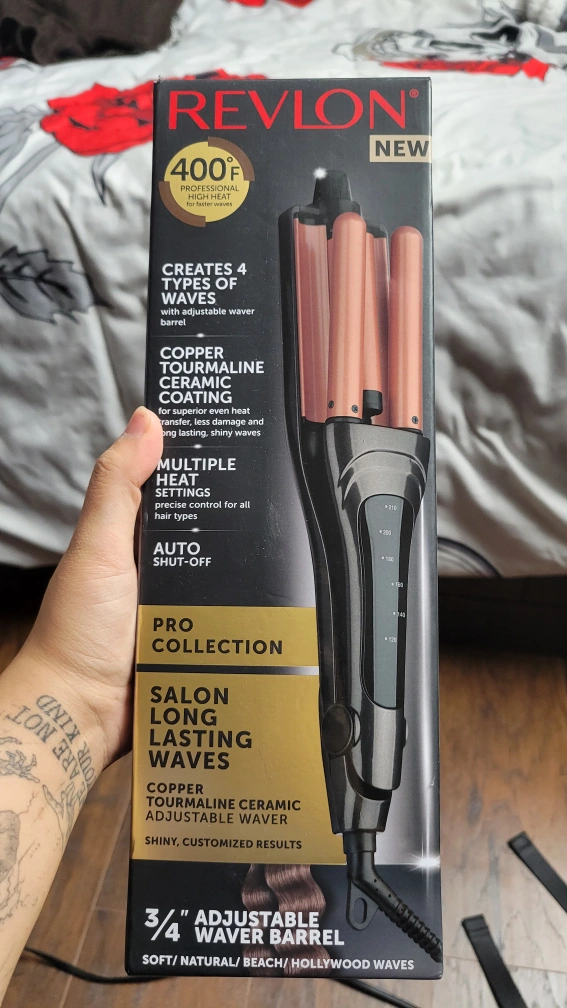 Copper tourmaline ceramic adjustable waver, creates four types of waves. Features multiple heat settings and auto shut-off.