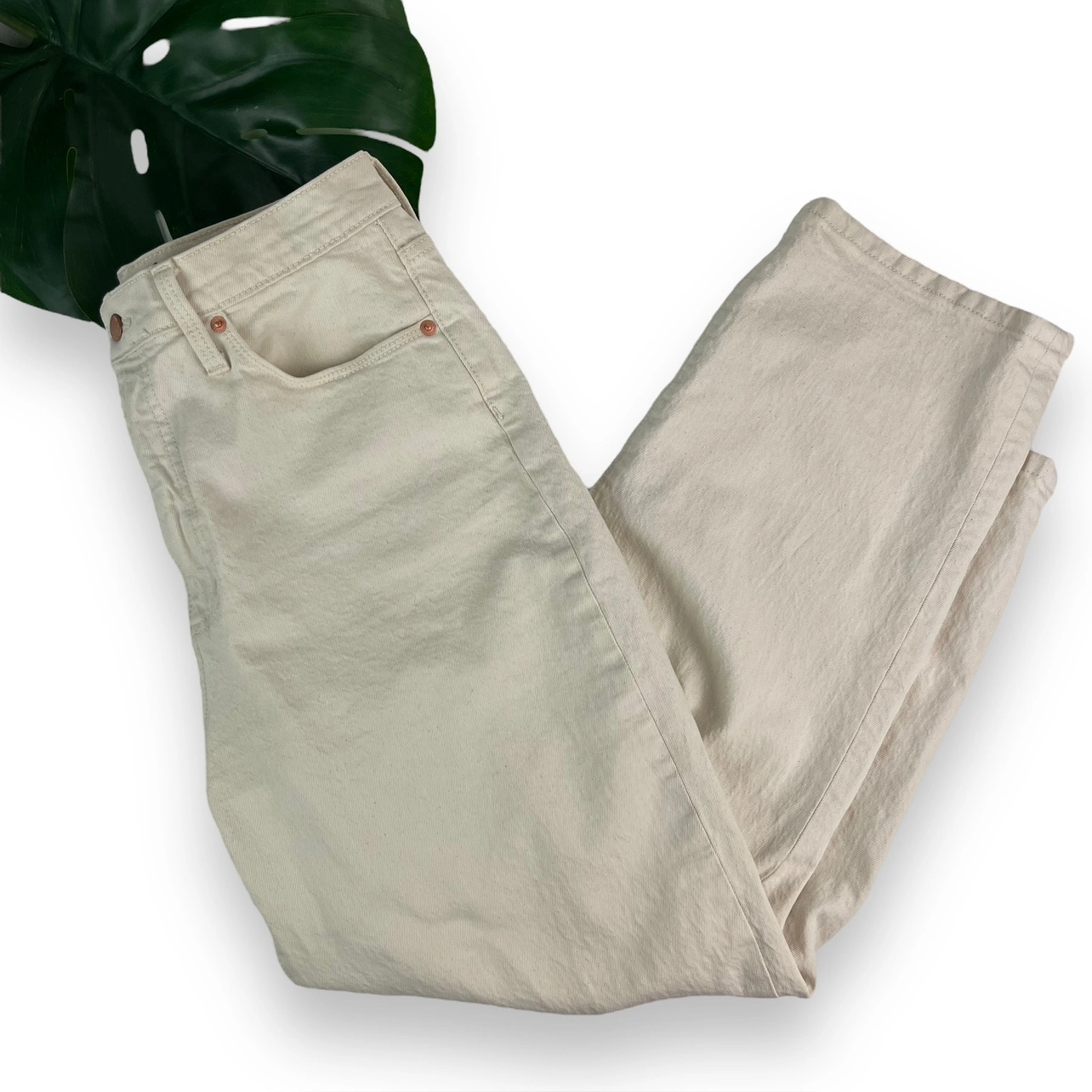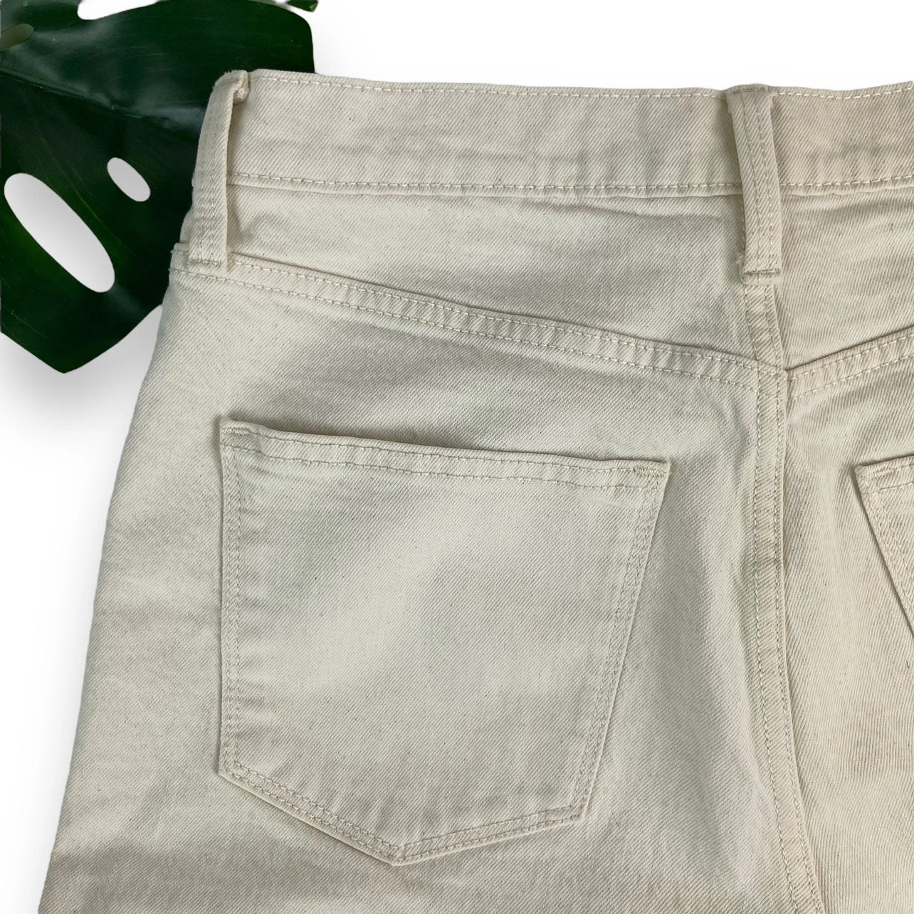 Made from a heavier weight denim in a creamy, flecked ivory ecru, these high-waisted jeans are engineered to give a vintage look with just the right amount of stretch