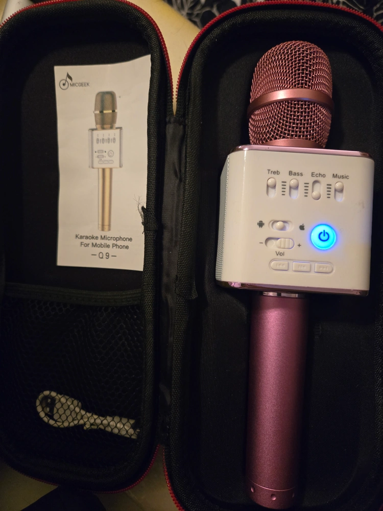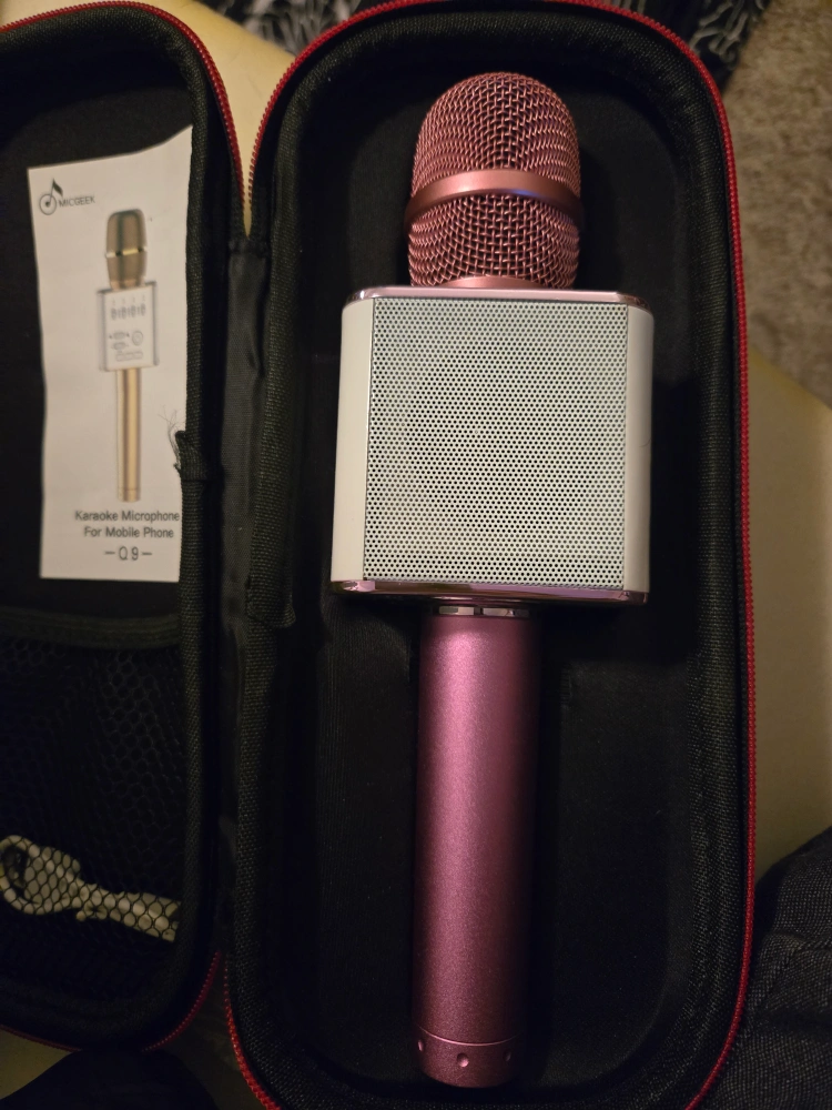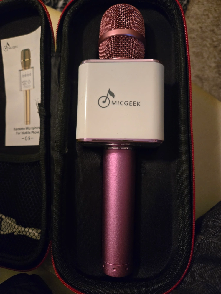 Pink karaoke microphone with carrying case and aux cord. Willing to deliver if I'm not busy and it's within a 3km radius or there is a $20 fee.