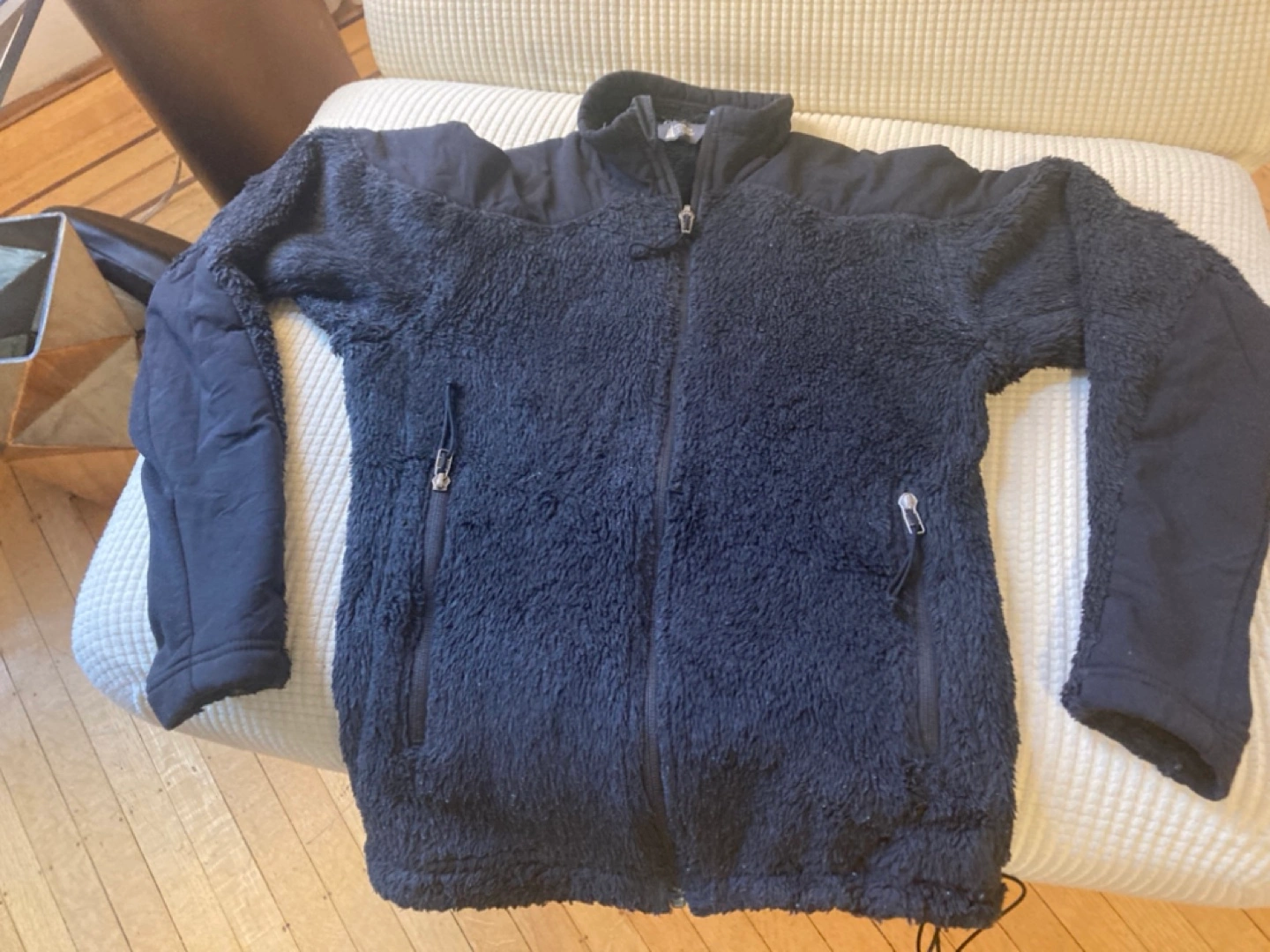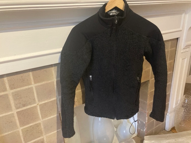 MEC black good quality fleece jacket. Full zip closure. Two zippered pockets. Drawstring hem. Pickup South Granville