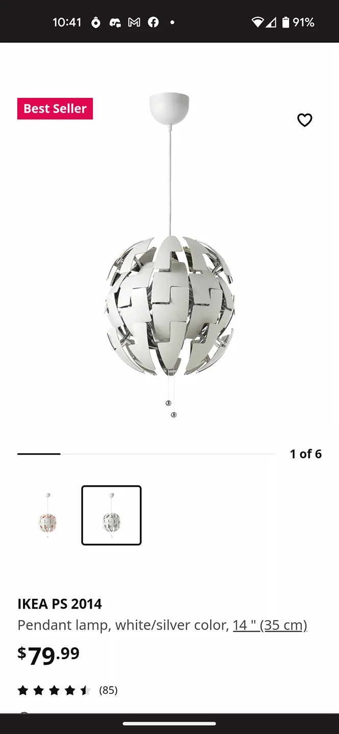 1 / 41 / 4Buy & SellIkea PS 2014 pendant lampIkea PS 2014 pendant lamp$51Ikea "exploding Death Star" white/silver hanging ceiling lamp. Moved to a new place and no longer fitsConditionLike newDimensions14" (35cm)WHERE TO MEETSackville StreetView MapSELLERverifiedSergioRegent Park13112 reviews1 chats·3 favorites·48 viewsSEND CHAT TO SELLERHi Sergio! I’m interested in your listing.Hi Sergio! I’m interested in your listing.Get the Karrot app to chatSign In to chat