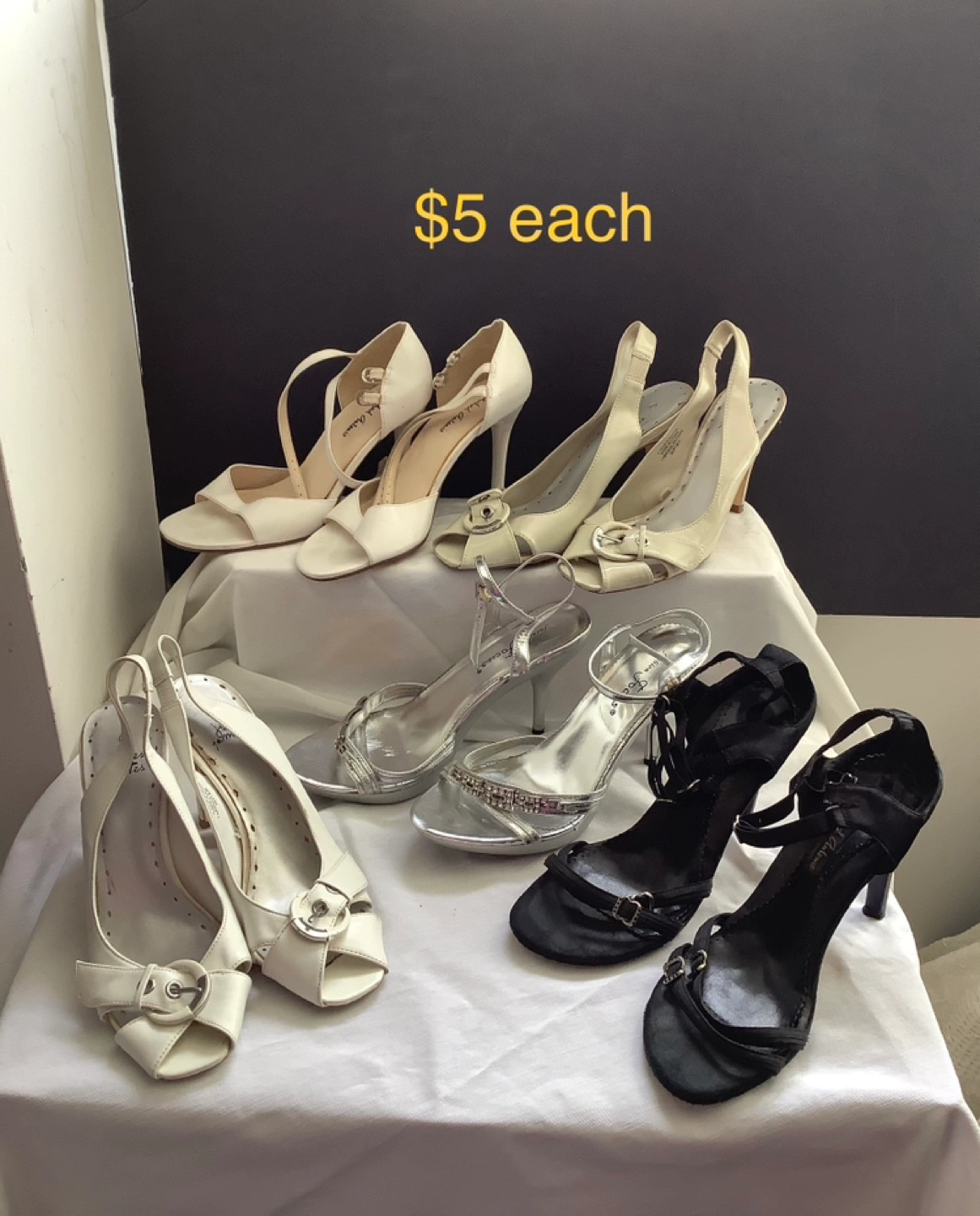 Women's high heel sandals. Various colours and styles. Size 8 and 8.5