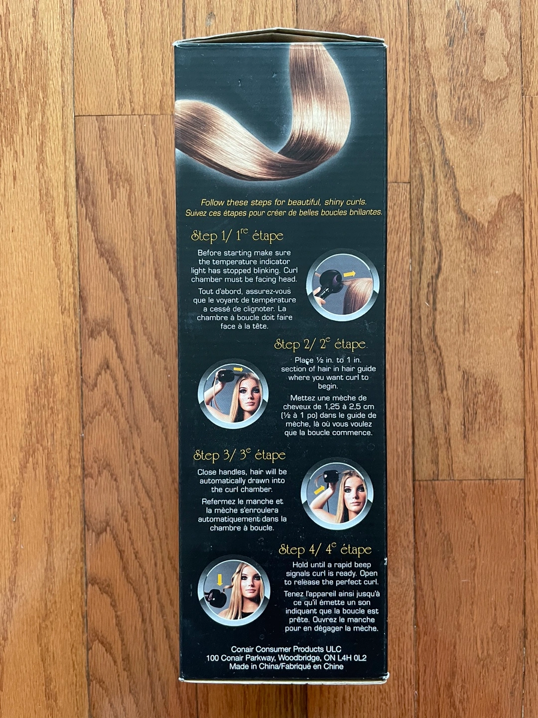 Tourmaline ceramic curling iron with 3 heat settings, 3 timer settings, and 2 temperature settings. Includes a heat-resistant glove.