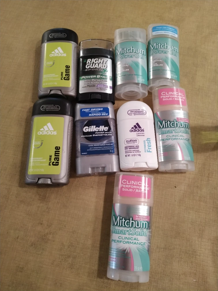 1000+Deodorant bundle - 9 different deodorants. Mostly stick deodorants. Some brand names include Adidas, Right Guard, Gillette, Mitchum, and more. $3 each