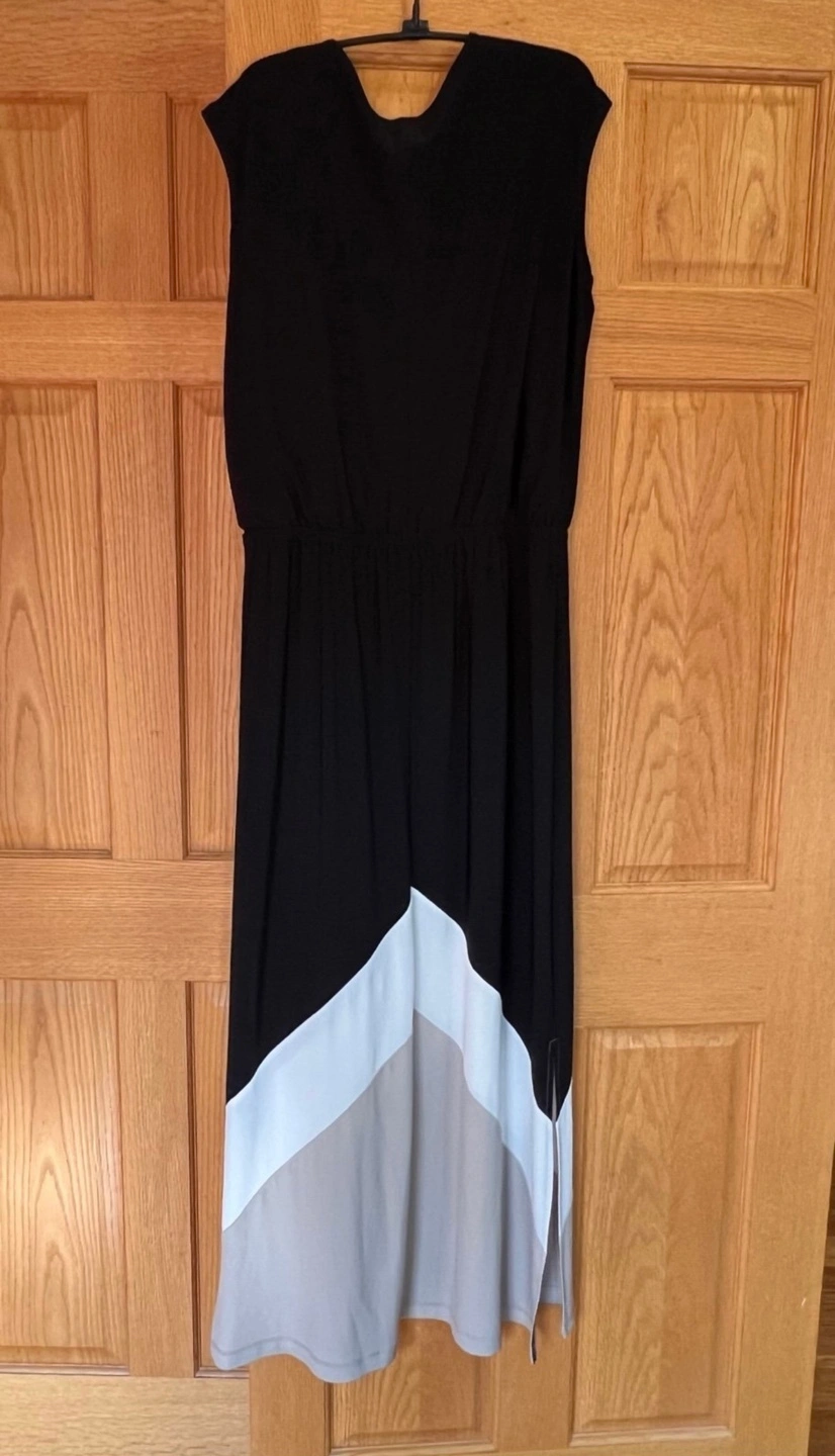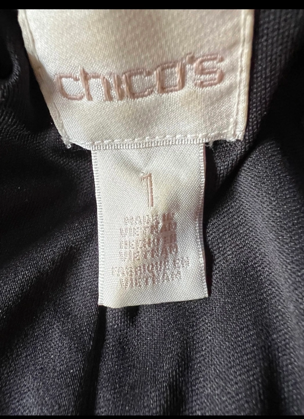 NWOT Chico's Sundress (with side slits on both sides -see picture. Black sleeveless dress with color block detail and a drawstring at the waist. Beautiful flowing dress. I wore it once for a family picture. Size 1 (M/8)