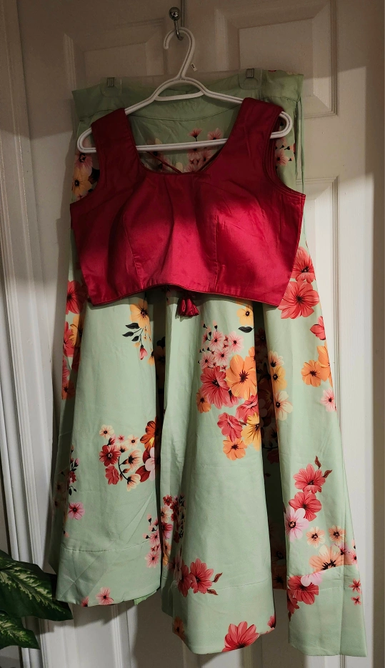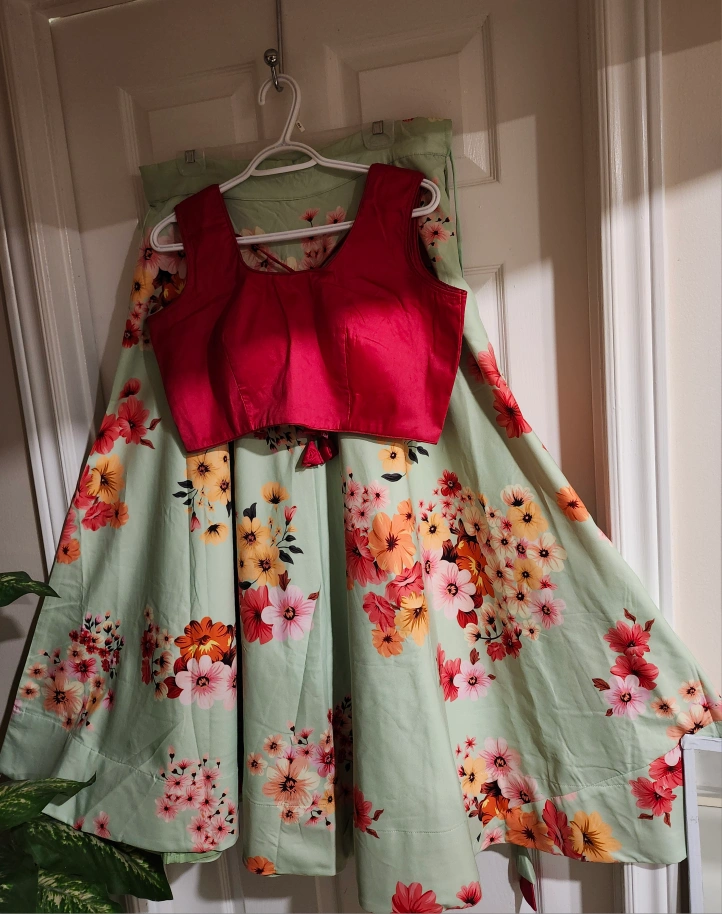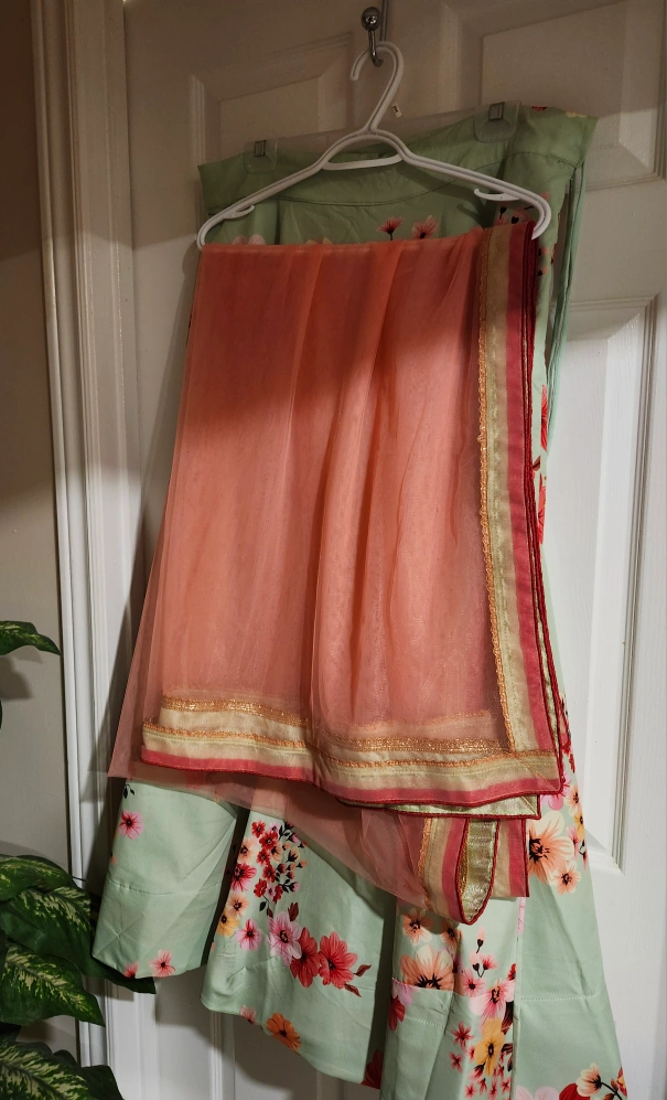 New Floral Lehenga with Pink Blouse + Pink Shawl - Size M | 38