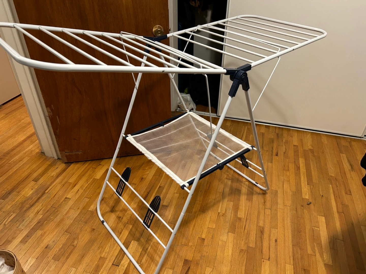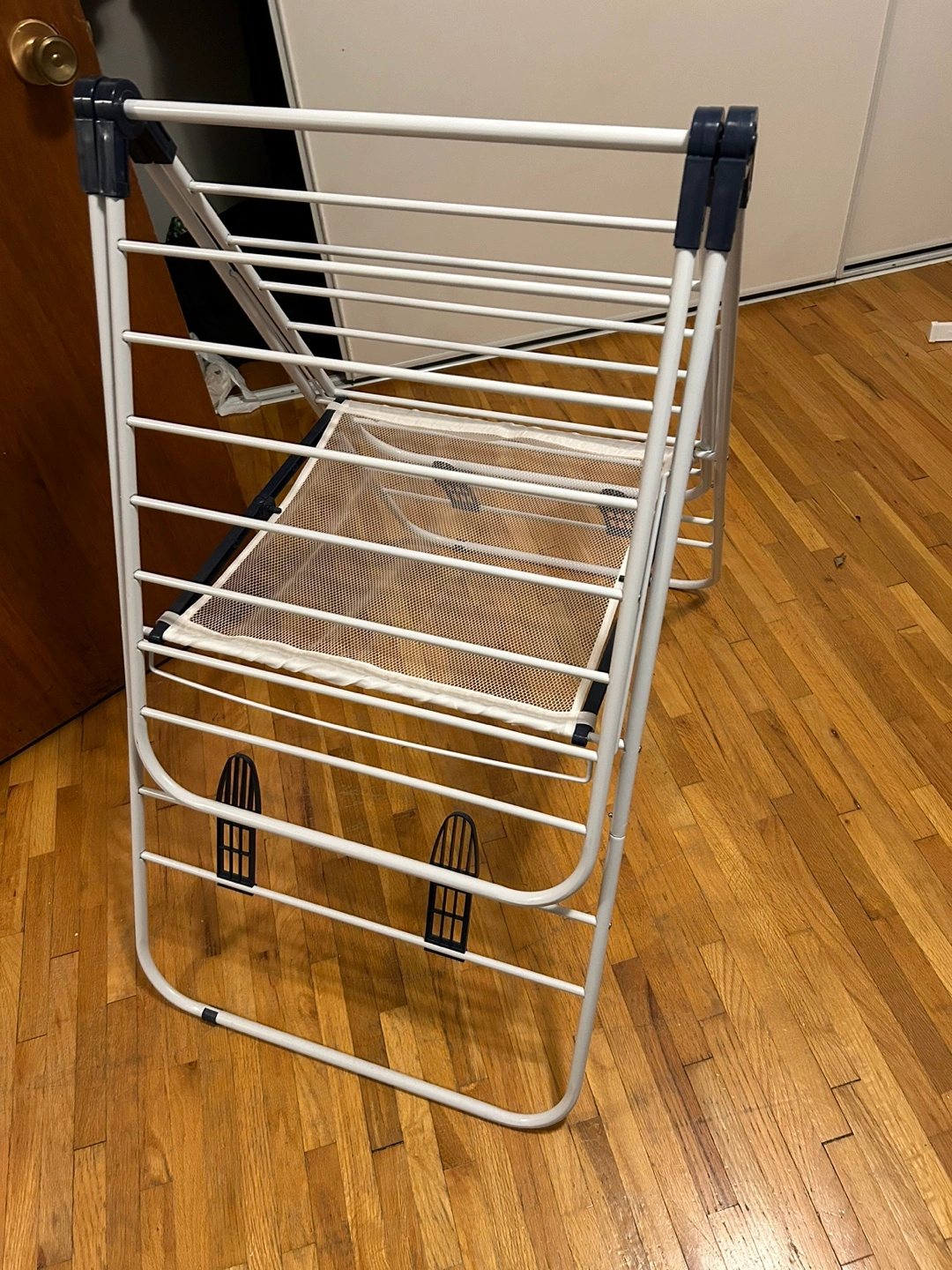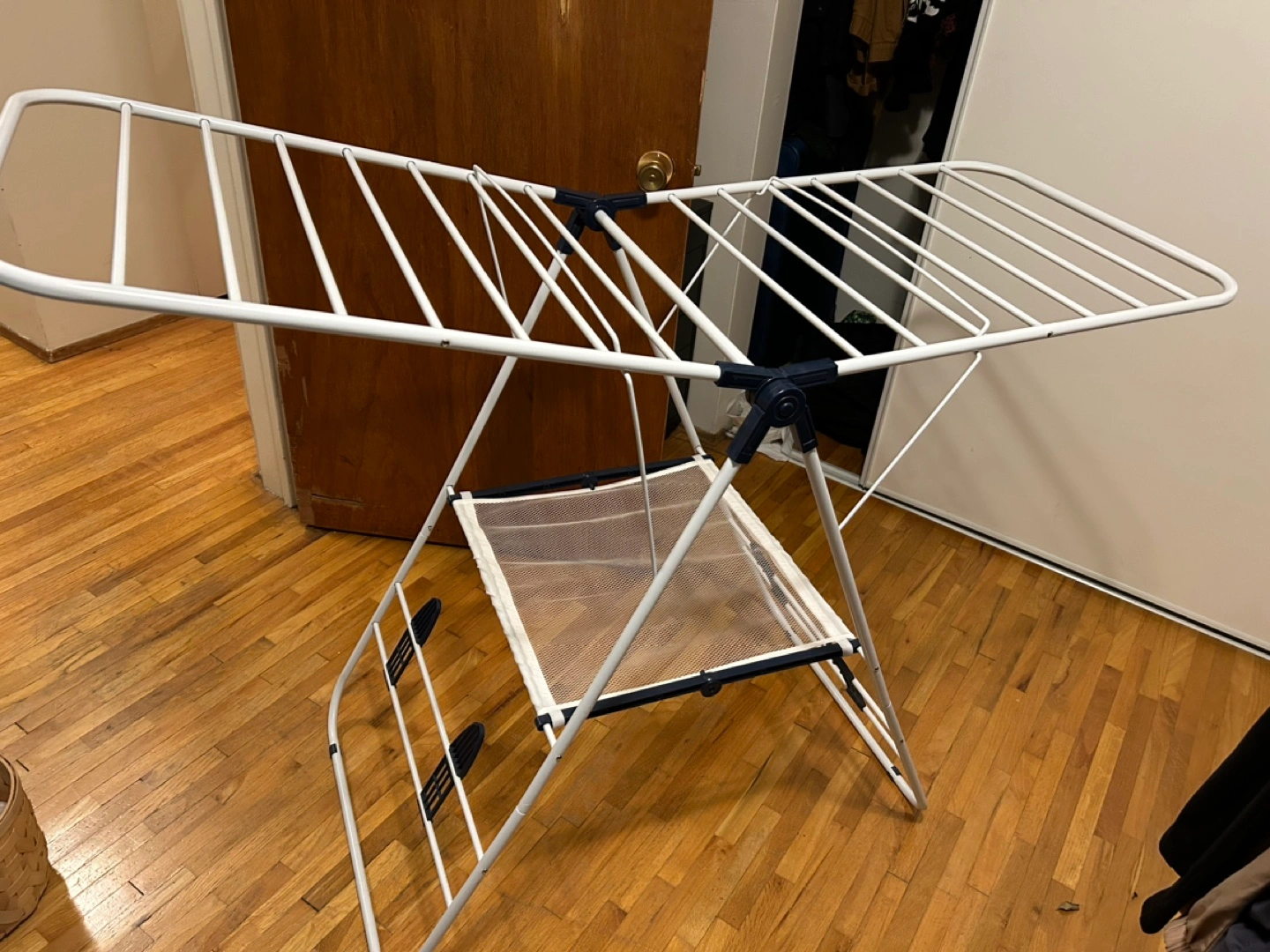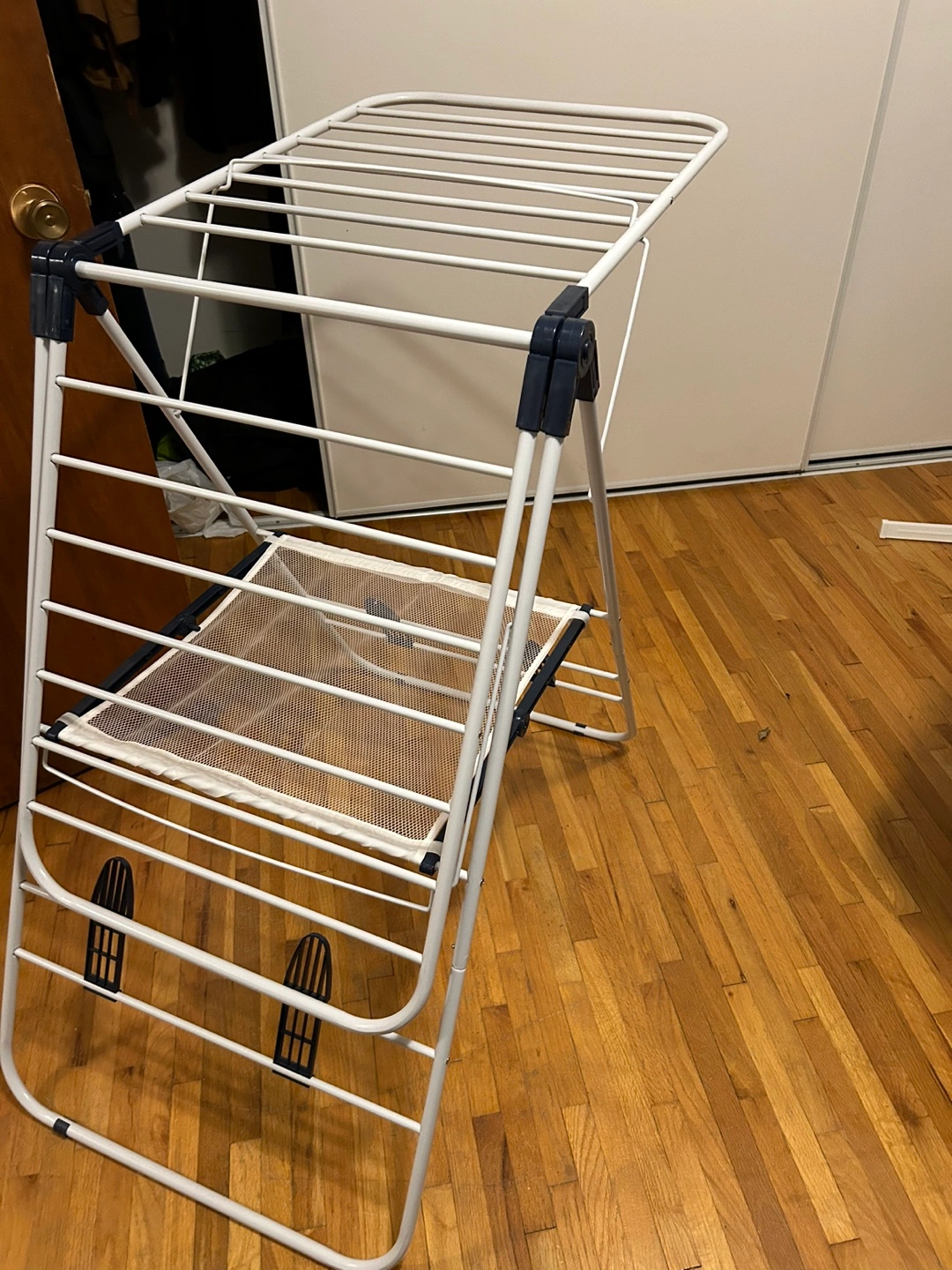 Folding drying rack with a mesh shelf. 43 feet of drying space.