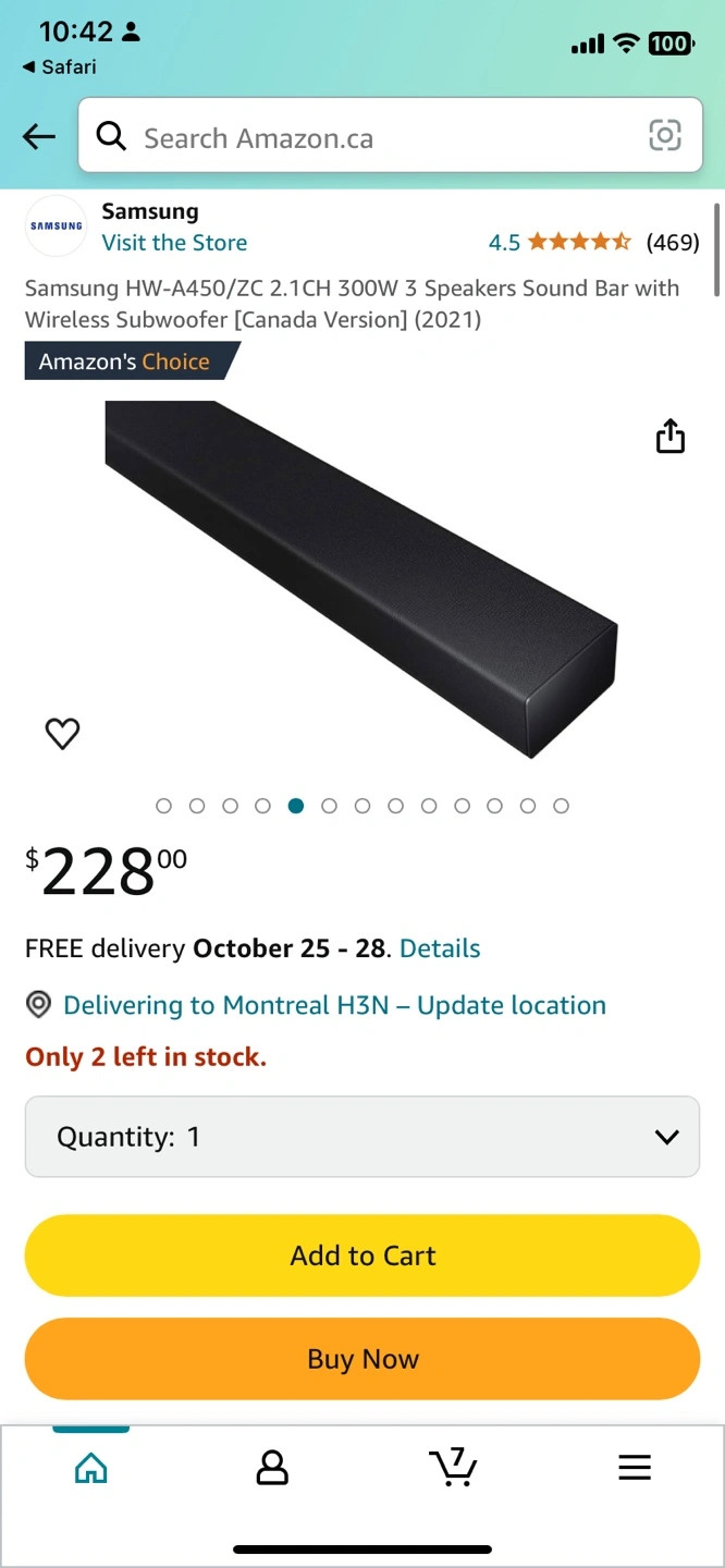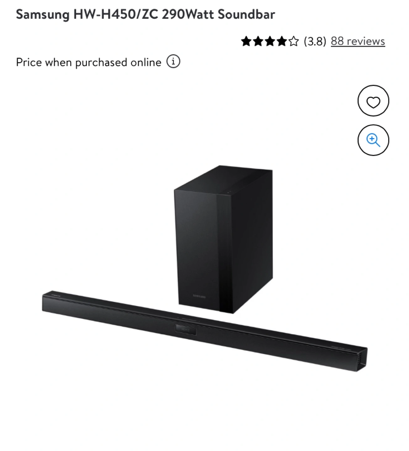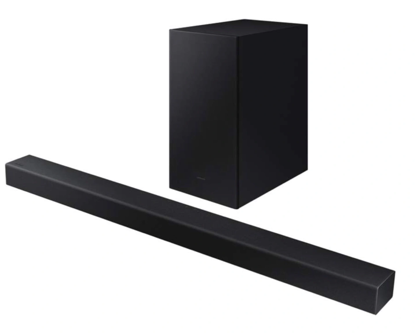 Soundbar with subwoofer, in good condition, minor cosmetic damage.