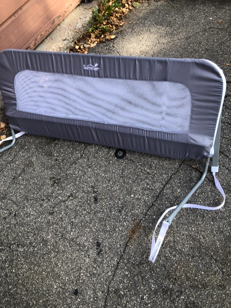 Grey bed rail with mesh panel. Used, but in good condition.avail for pick up at don mills Steele east. All sales are final.
