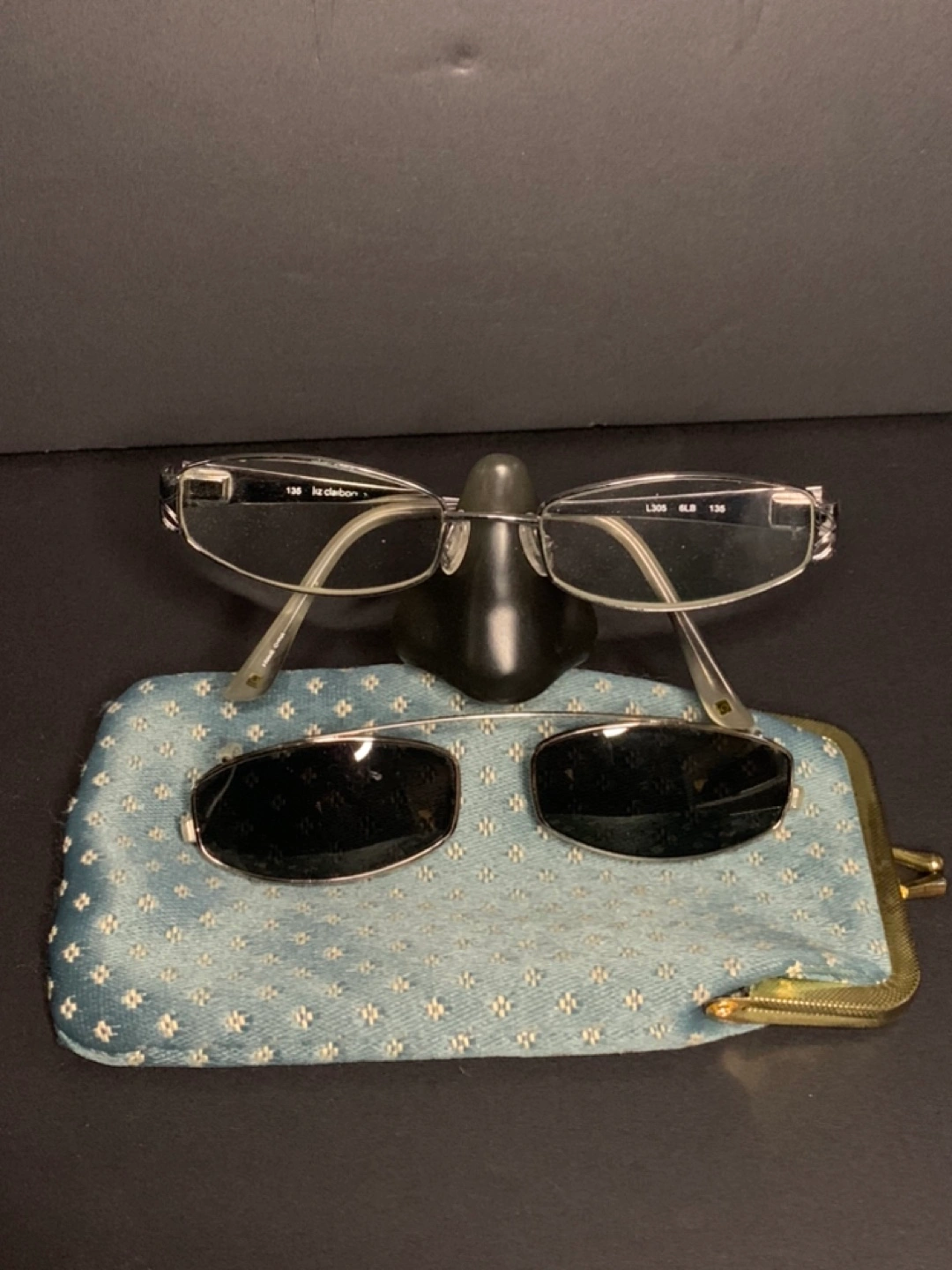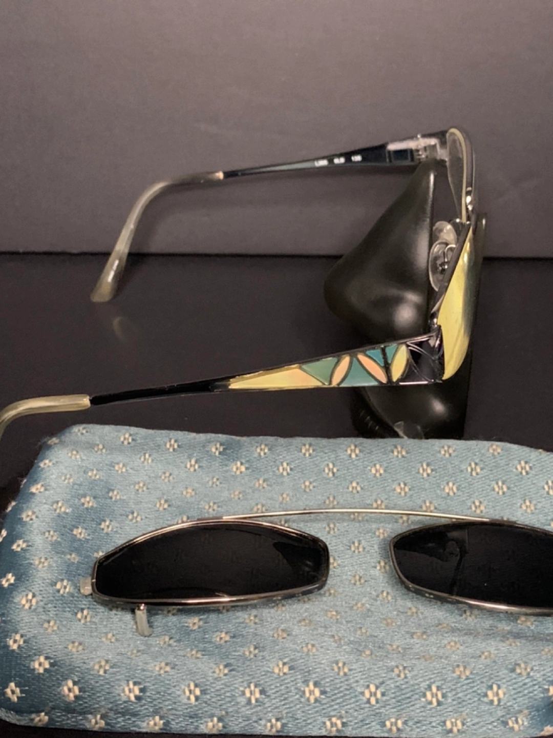 Liz Clairborn abalone shell in laid frames with clip on sunglass lenses and case