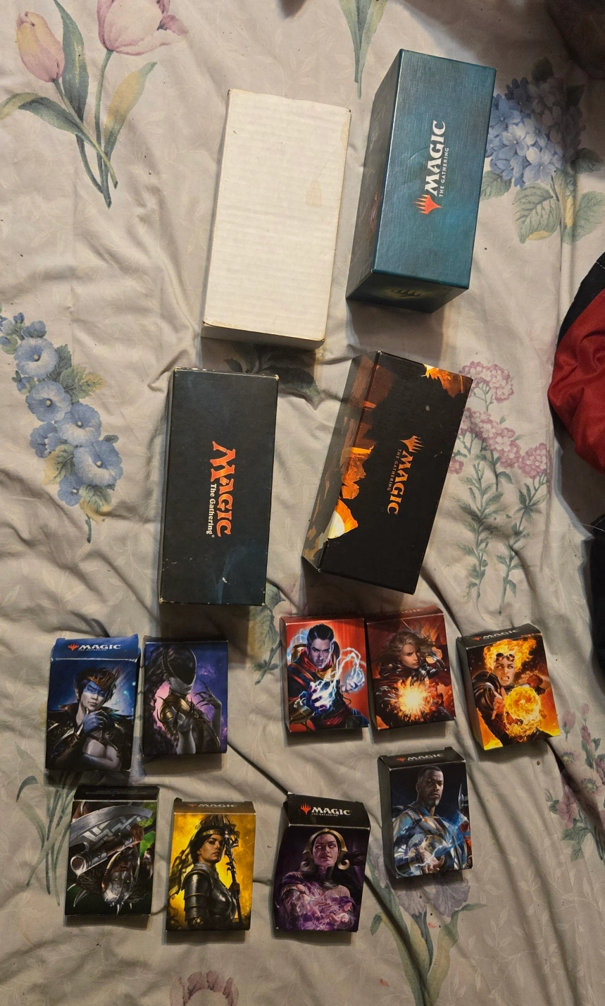 Set of Magic: The Gathering cards, collected over the years. i believe all the smaller boxes are subsected into playable decks, but I'm not sure. Looking for a bulk buy