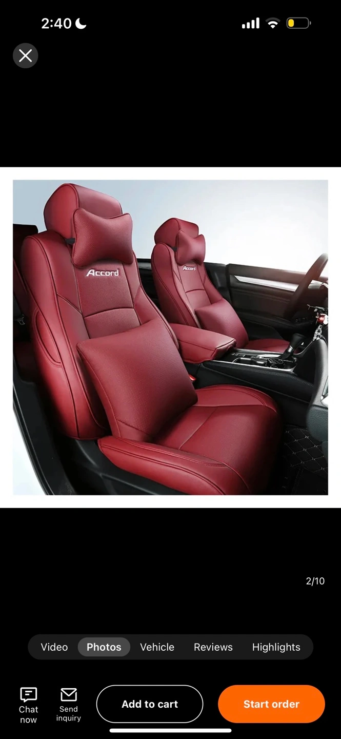 Set of maroon/dark red leather car seat covers. Includes headrest covers. New, never used. For Honda Accord 9th gen