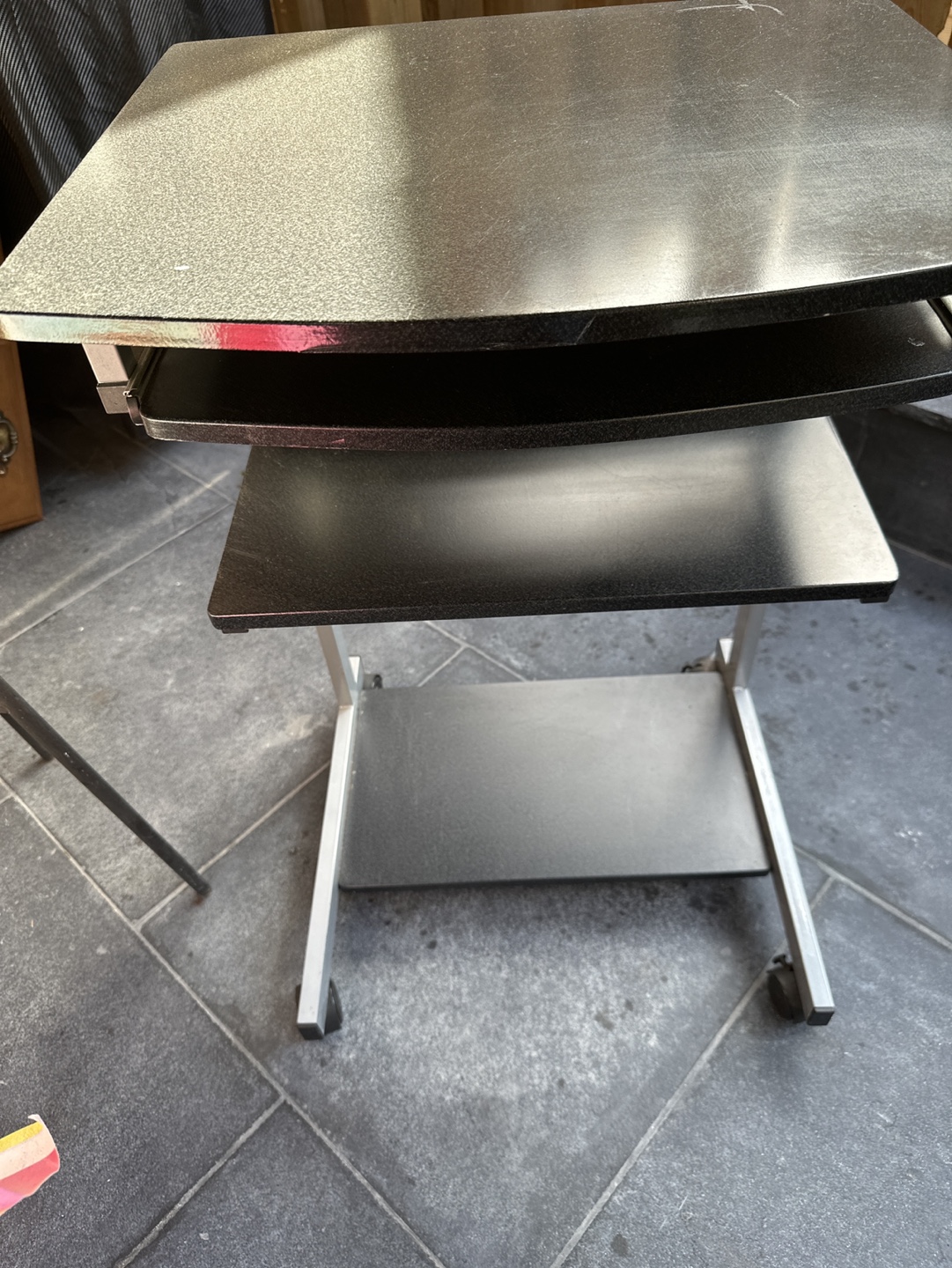1 / 11 / 1Buy & SellBlack Rolling DeskBlack Rolling Desk$20Black rolling desk with two shelves. Silver metal frame. Wheels in good working condition.DimensionsDeskWHERE TO MEETWeston and janeView MapSELLERFloryMount Dennis13312 reviews1 chats·1 favorites·75 viewsSEND CHAT TO SELLERHi Flory! I’m interested in your listing.Hi Flory! I’m interested in your listing.Get the Karrot app to chatSign In to chat