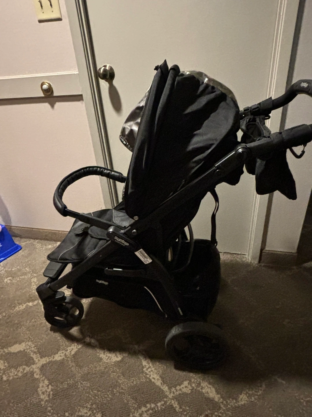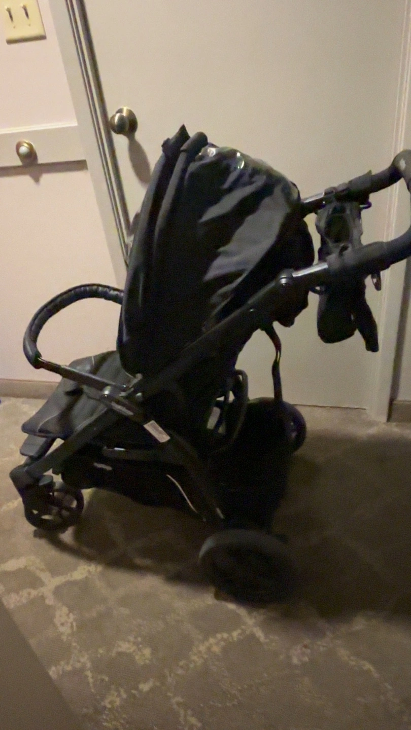 adapter. It is lightweight and easy to fold. It includes a large storage basket under the seat.