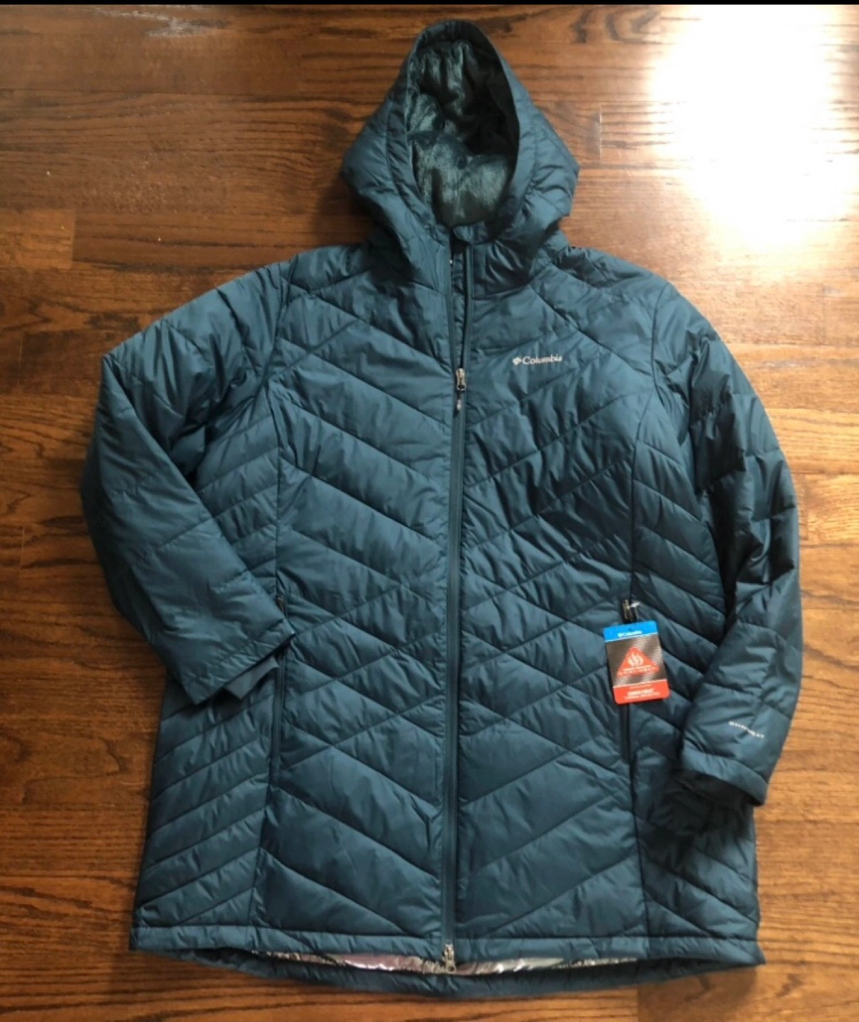 NEW Columbia Women’s Jacket, Omni-Heat Thermal Reflective, Women's jacket with a hood. Features an insulated lining and a reflective layer.