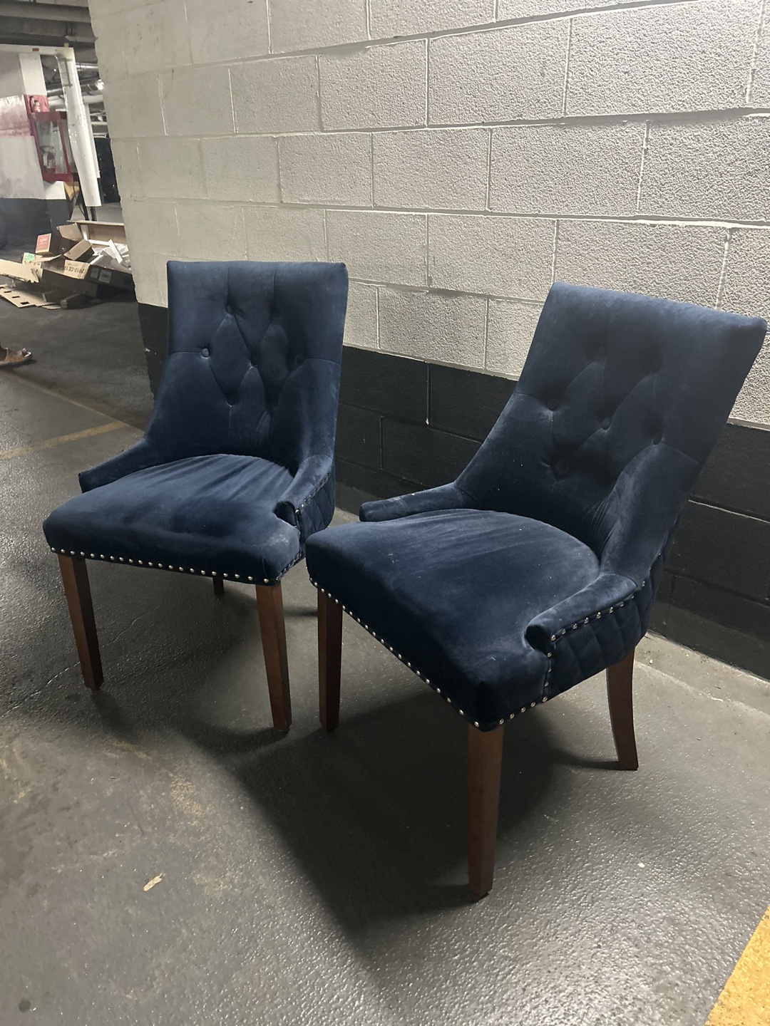 1 / 31 / 3Buy & SellSet of 2 Blue Velvet Dining ChairsSet of 2 Blue Velvet Dining Chairs$63Set of two blue velvet dining chairs with wood legs and nailhead trim.WHERE TO MEETCheck LocationView MapSELLERverifiedTulikaWaterfront Communities875 reviews5 chats·8 favorites·221 viewsSEND CHAT TO SELLERHi Tulika! I’m interested in your listing.Hi Tulika! I’m interested in your listing.Get the Karrot app to chatSign In to chat