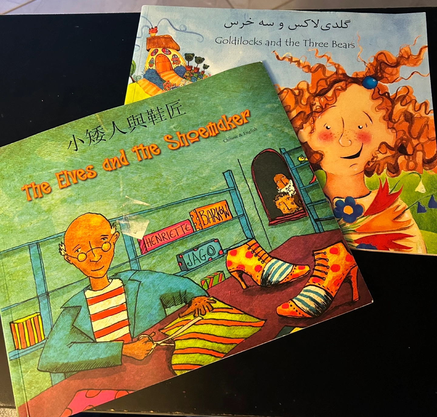 Children's book in Chinese and English. The Elves and the Shoemaker story book