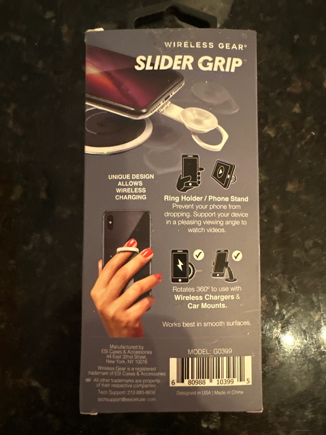Rotates 360 degrees to use with wireless chargers and car mounts. Ring holder and phone stand. Unique design allows wireless charging. Works best on smooth surfaces.