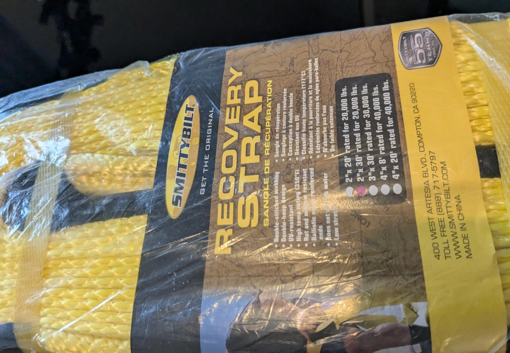 Pick up only please. CHECK THE MAP FOR LOCATION BELOW 👇🗺️ Amazon $60 Asking $45 Perfect for your winter vehicle emergency kit! Smittybuilt 20,000 lb recovery strap. Brand new in packaging. Engineered to high standards Assured high quality and dependability Tested under extreme conditions 20,000 lb Capacity (Load should be 1/4 - 1/3 of that, max) Perfect for your winter vehicle emergency kit! Smoke Free and Pet Free home Feel free to ask any questions!