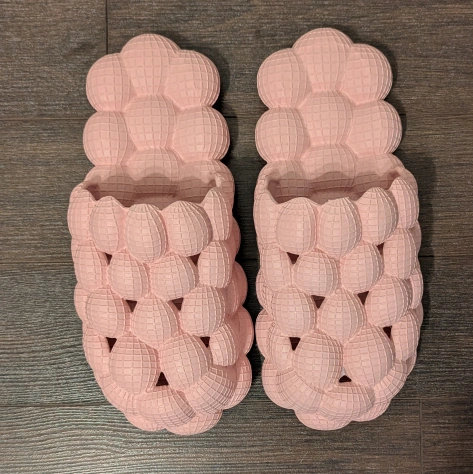 158Pair of pink bubble slippers. Fits up to size 11. Soft and comfortable. Worn (tried) only once or twice (almost unused) indoors in a clean/shoe-free/pet-free house. Selling because of moving. Check out my other moving sale ads.
