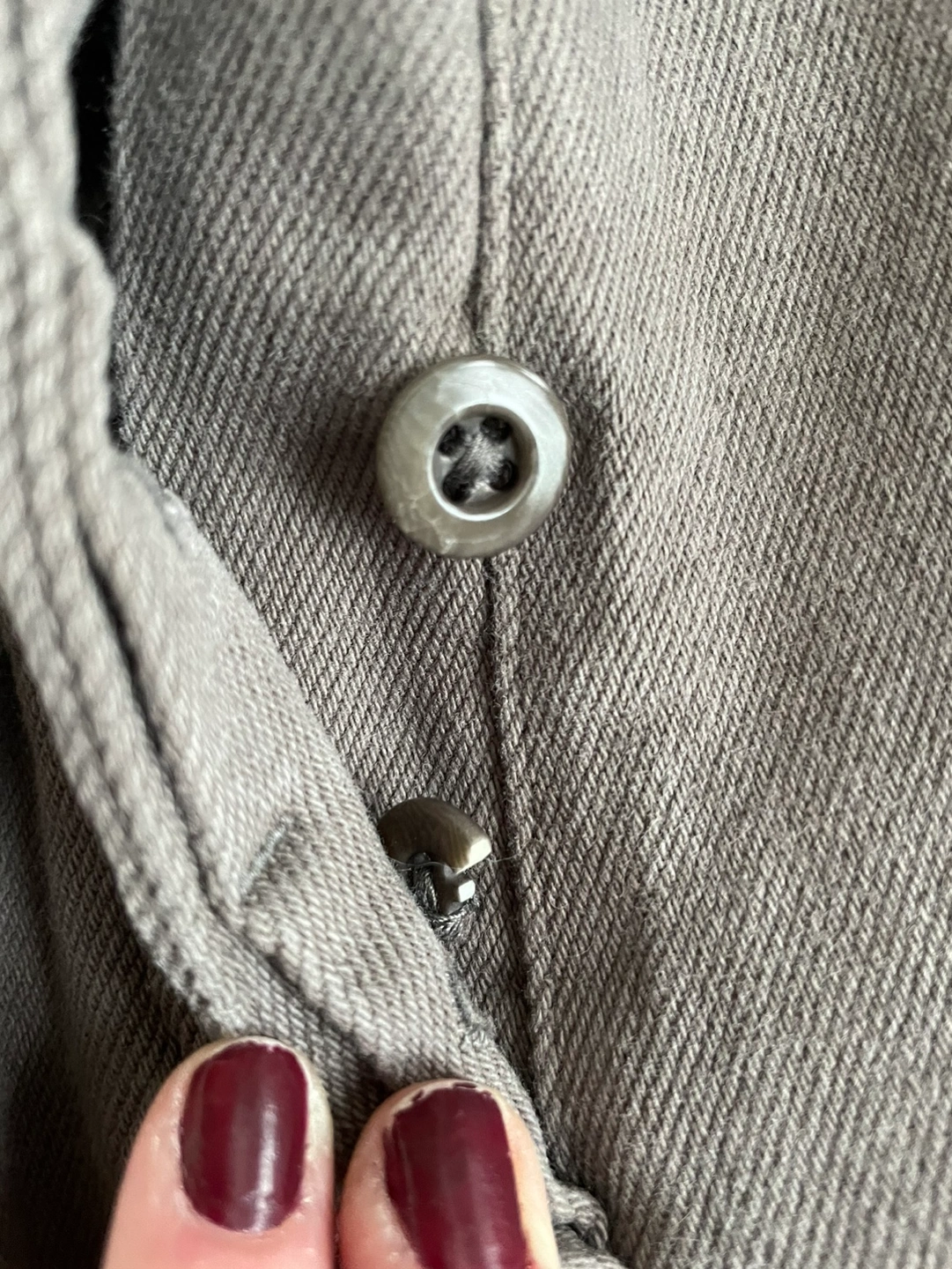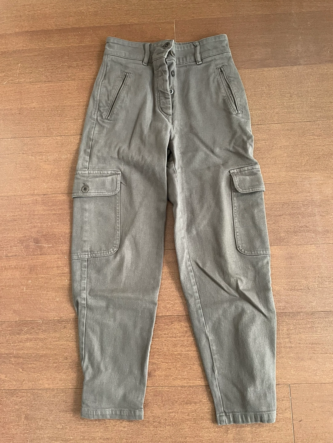 Wilfred free gray cargo pants. Great condition except one butting on the fly is broken, see last photo (cannot it see it at all when done up). Nice thick material, with adjustable straps on the ankle if you want them tapered.