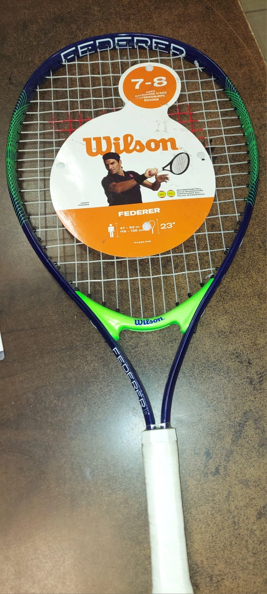 18Youth sized tennis racket. Purple and green. Wilson brand.23"