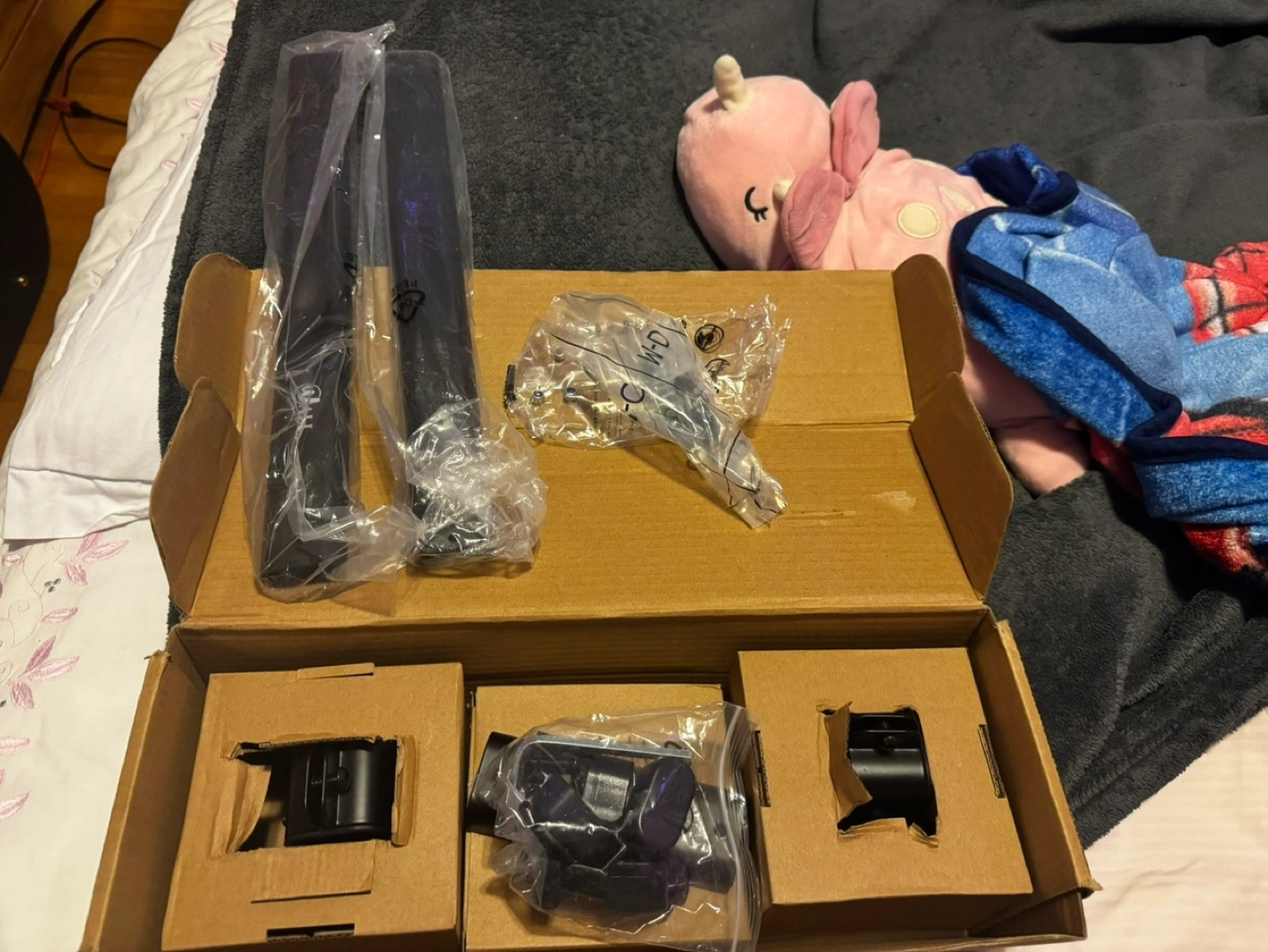 never used, only looked at, comes with all parts and screws. some of the bags have been torn open by the box but i can put them in separate ziplock bags.