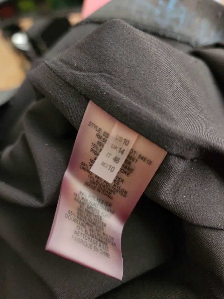 R.J Clothing Short sleeve, midi-length dress. Black on one side and blue abstract print on the other. Zipper closure on the back.