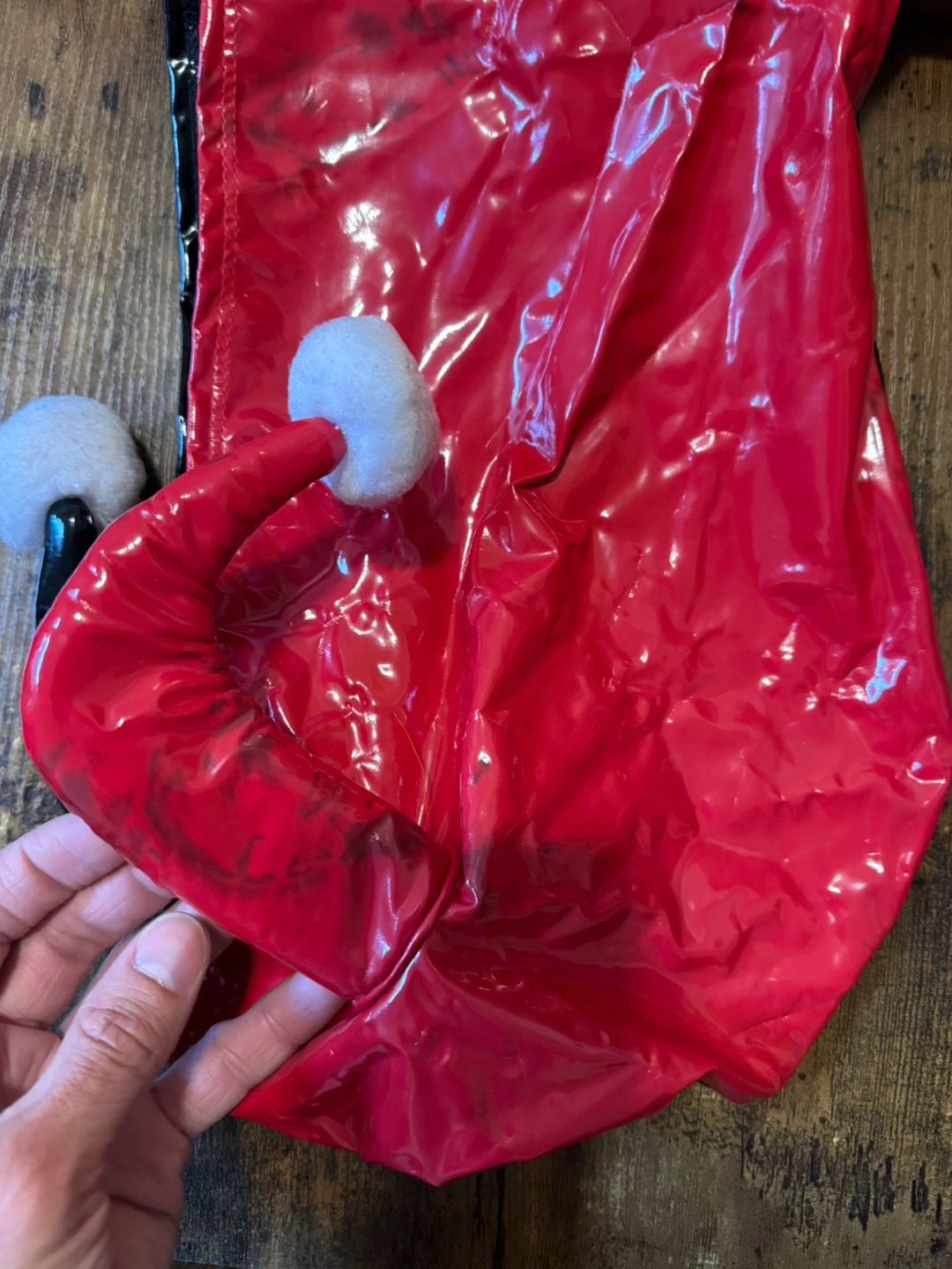 Condition: Pre-owned, with some staining on the red parts of the costume.