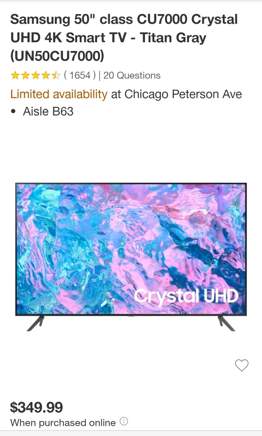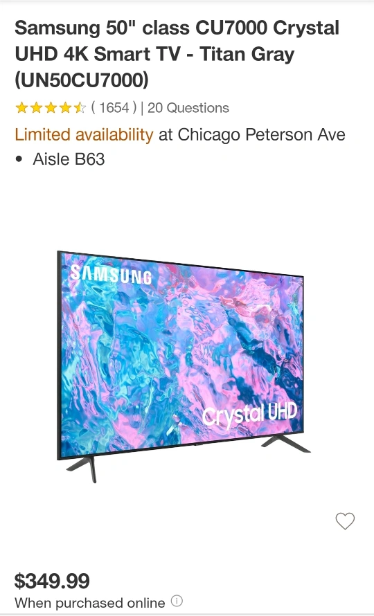 Samsung Crystal UHD 50" TV - CU7000 Series *NEW*