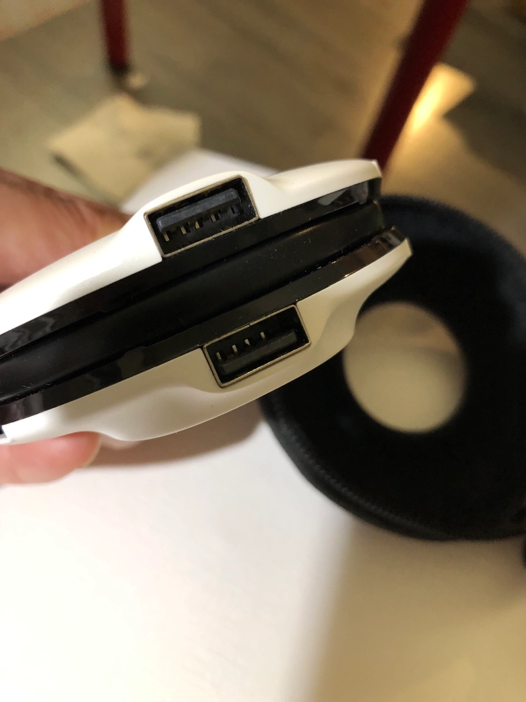 Travel power adapter with built-in USB charging ports.