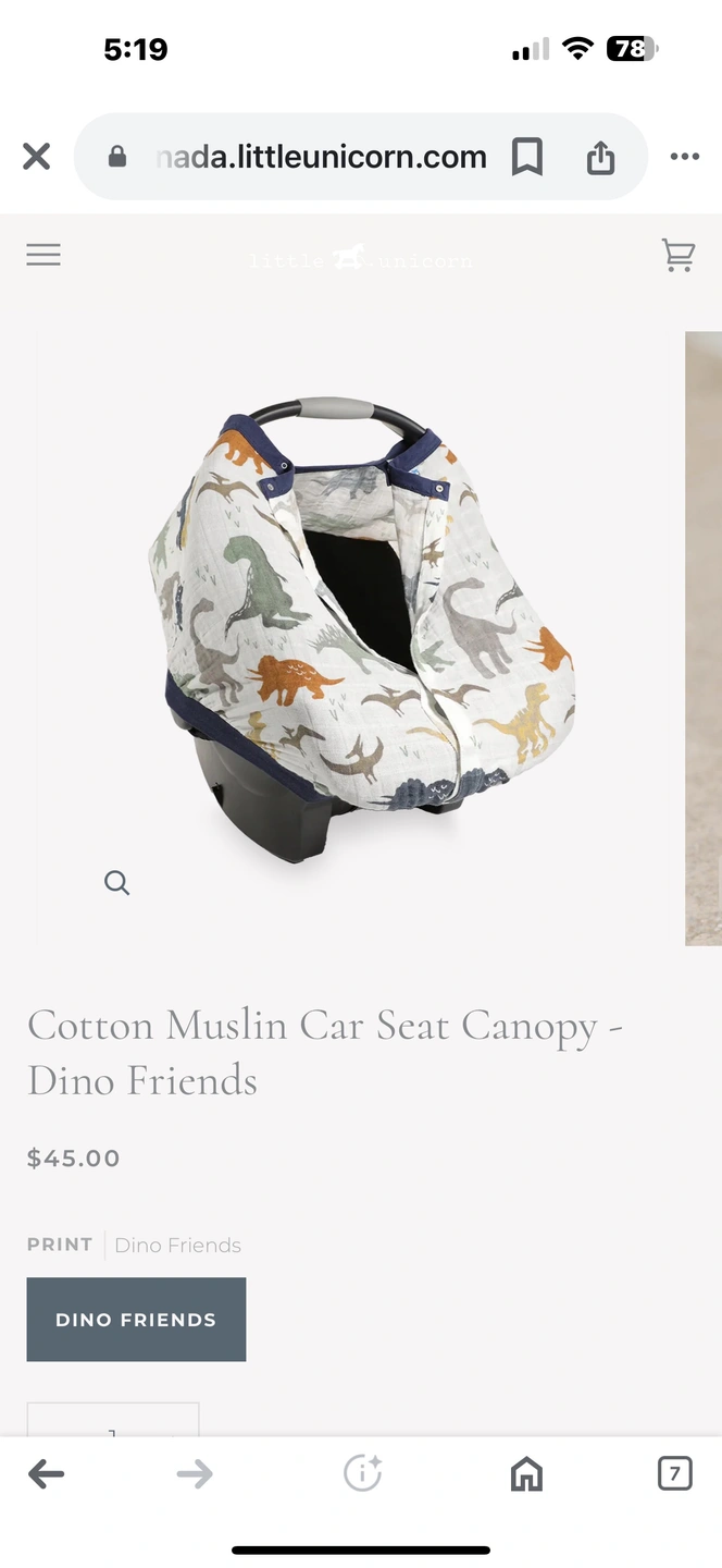 Cotton Muslin car seat canopy, great condition, barely used, Bison print.