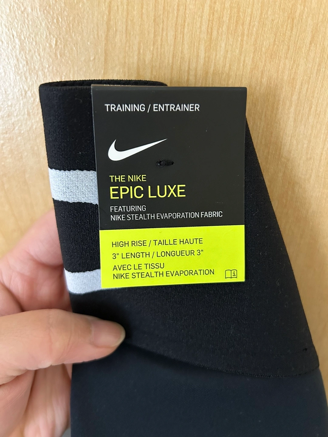 Black Nike Pro Epic Luxe training shorts. High rise, 3" length, Nike Stealth Evaporation fabric.
