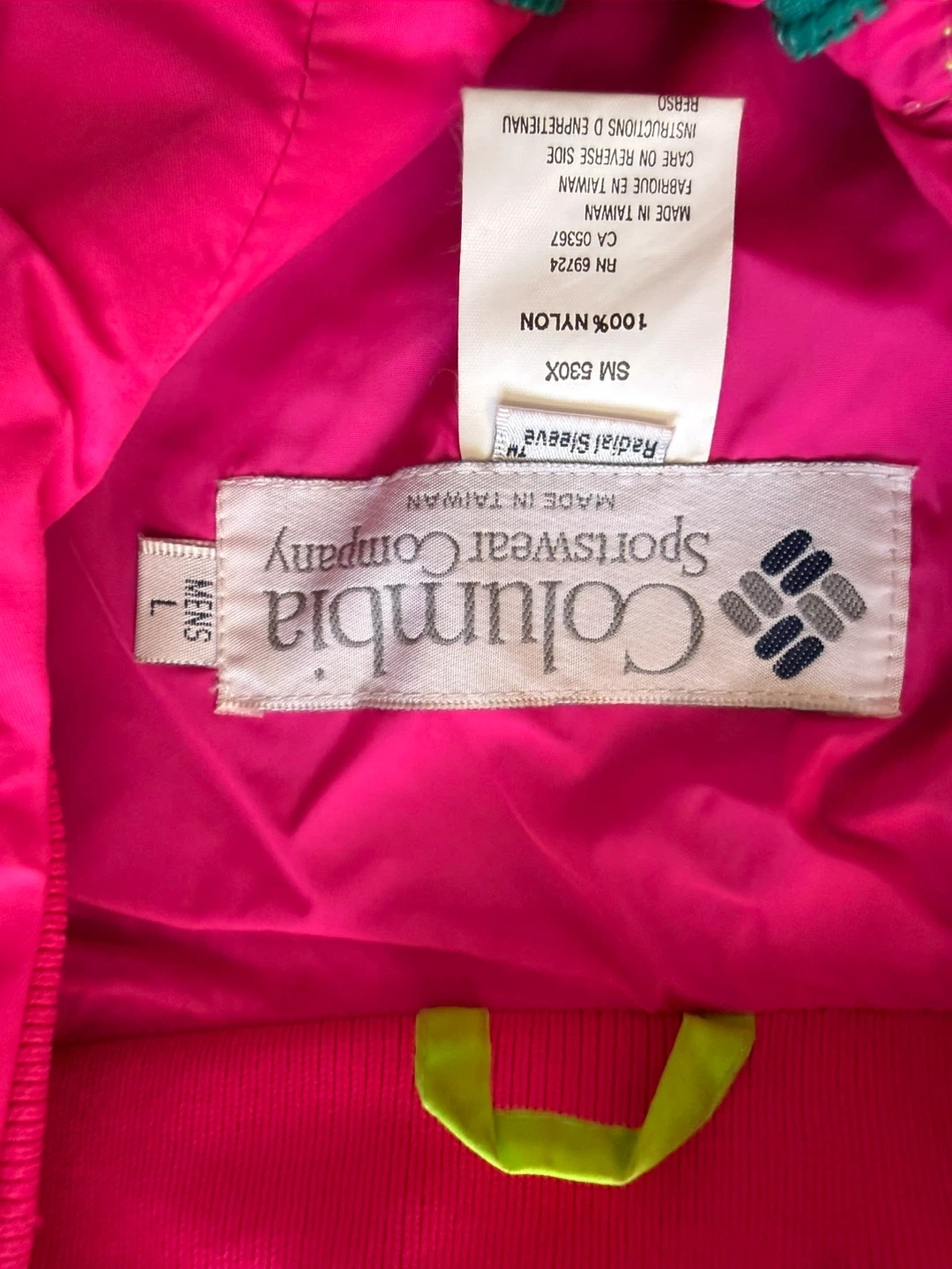 Vintage Columbia Bugaboo Jacket 90s Teal Pink Ski Nylon Coat Mens L
