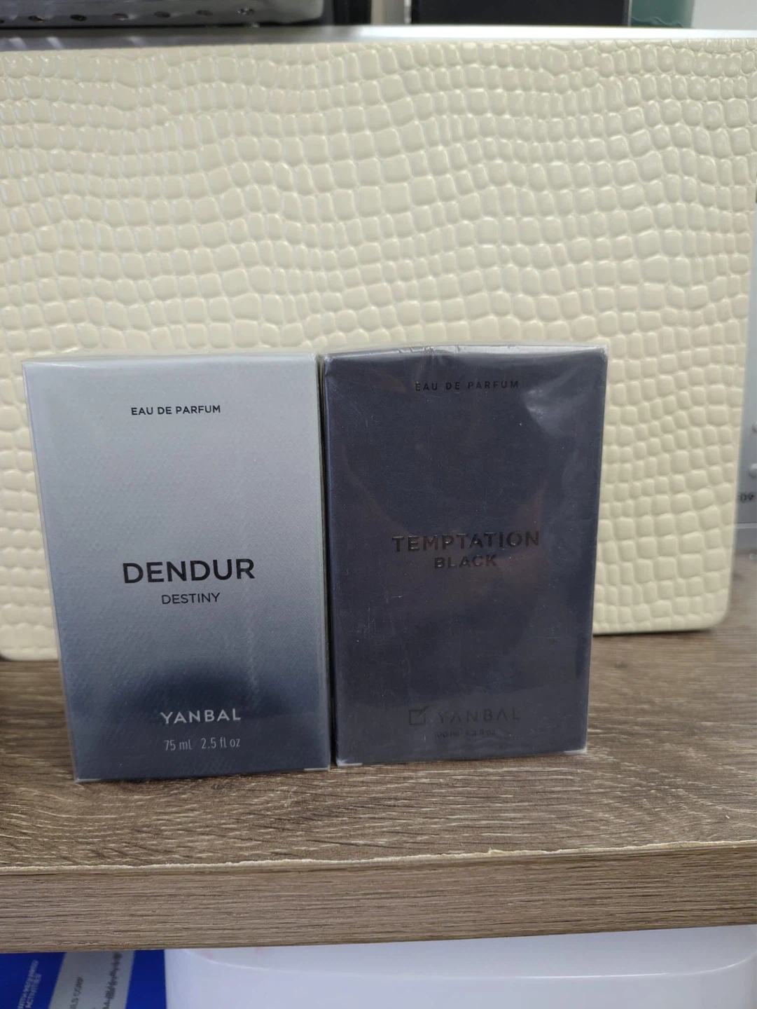 This listing includes two Yanbal Eau de Parfum bottles. Dendur Destiny is 75 ml (2.5 fl oz). Temptation Black is also included. Both are in their original packaging.