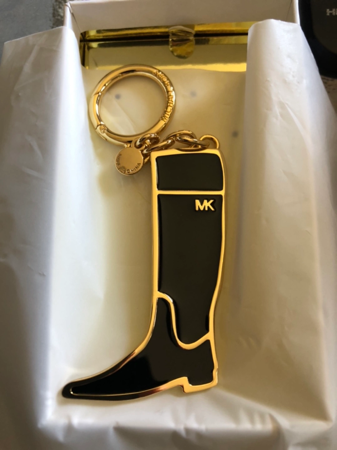 Gold boot keychain with Michael Kors branding. Authentic, and rare! Comes in original box. No tarnished material or scratches. Boot without gold loop hook is 3” long.
