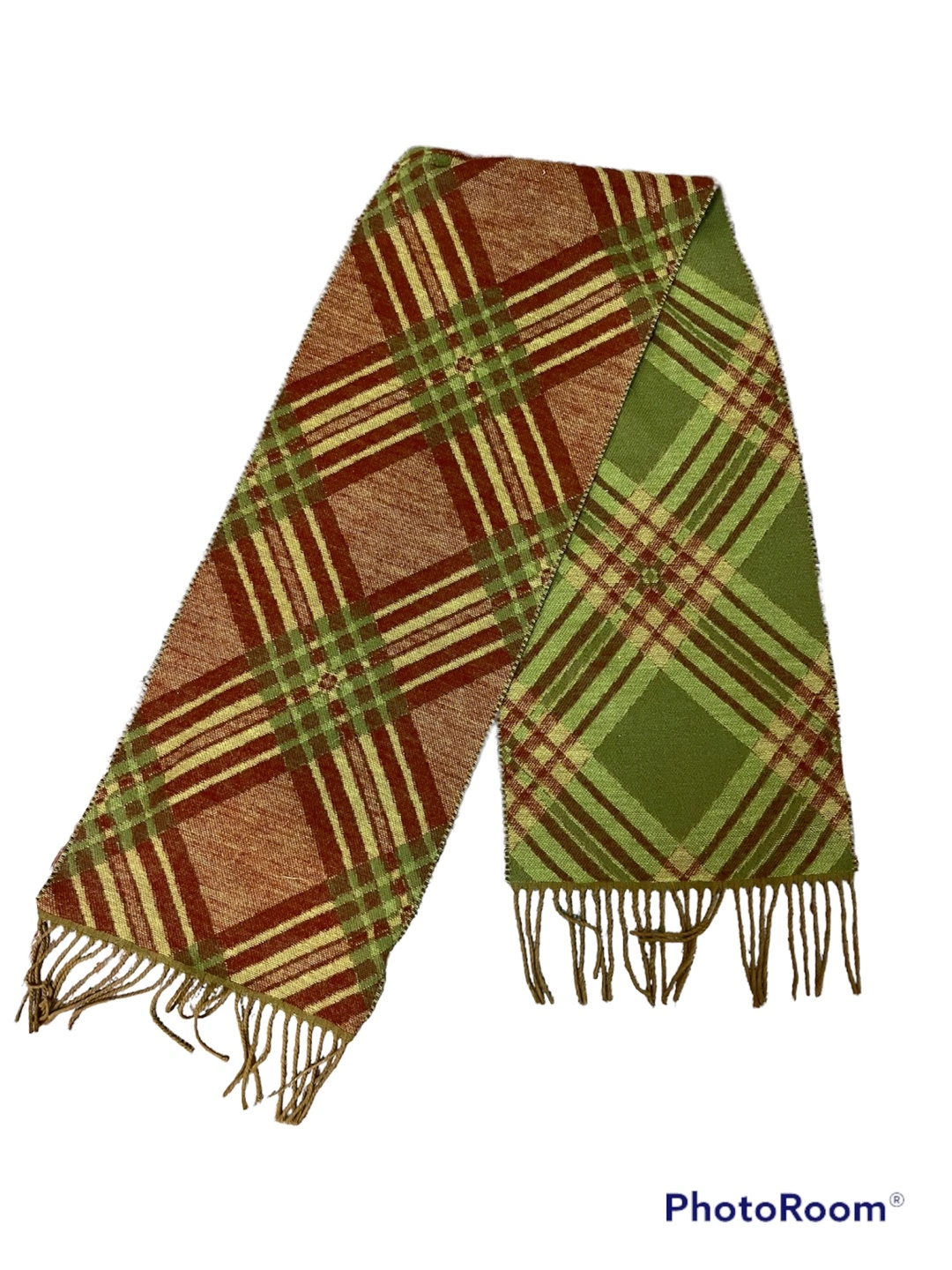 Colors rust, olive green and mustard.