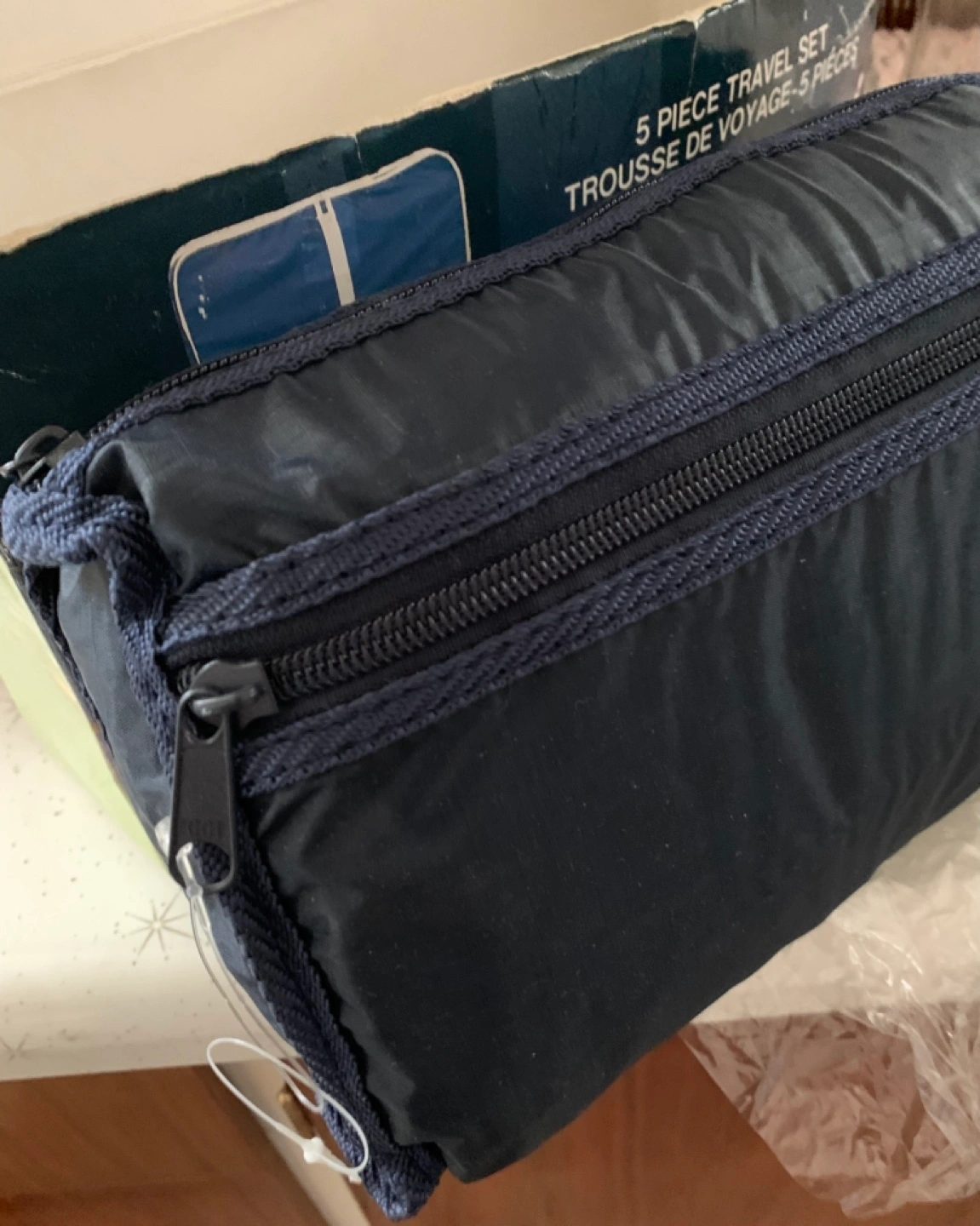 NEW 5 Piece Portable Travel Set-Dark Blue Nylon- 2pks available