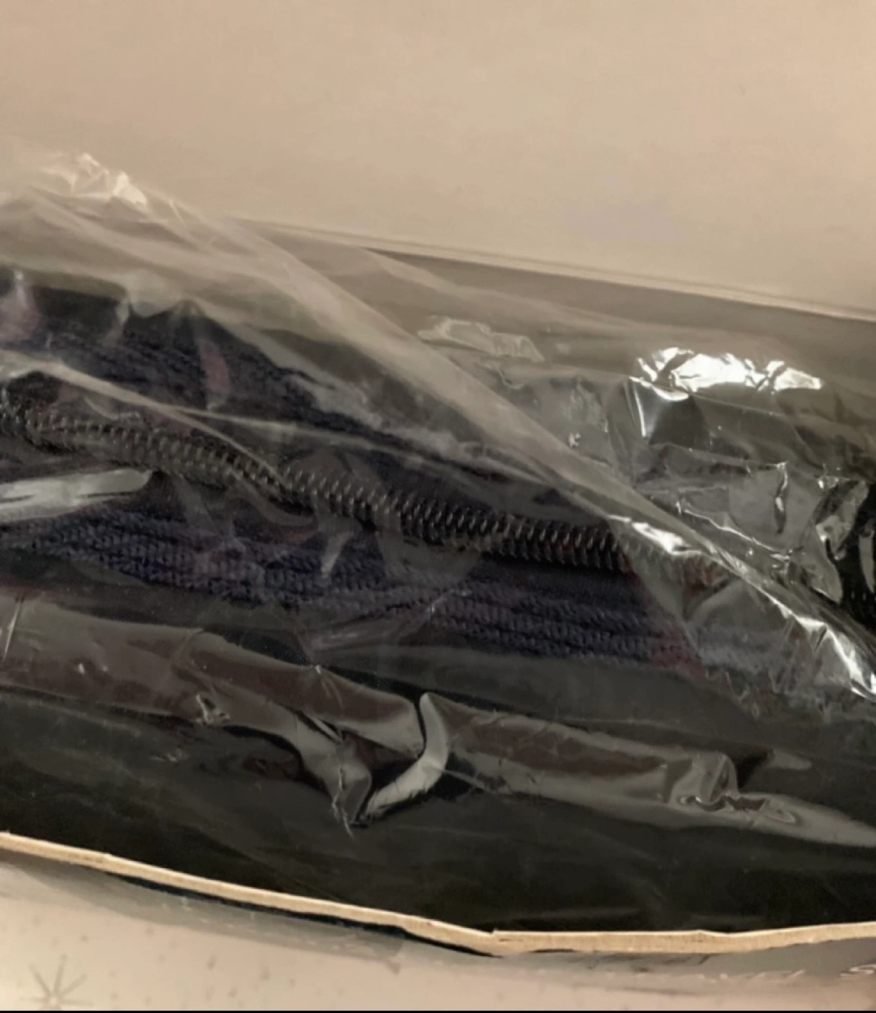Set is ALL dark blue in colour (NO white stripes as shown on packaging)