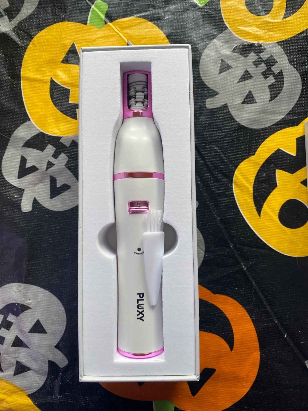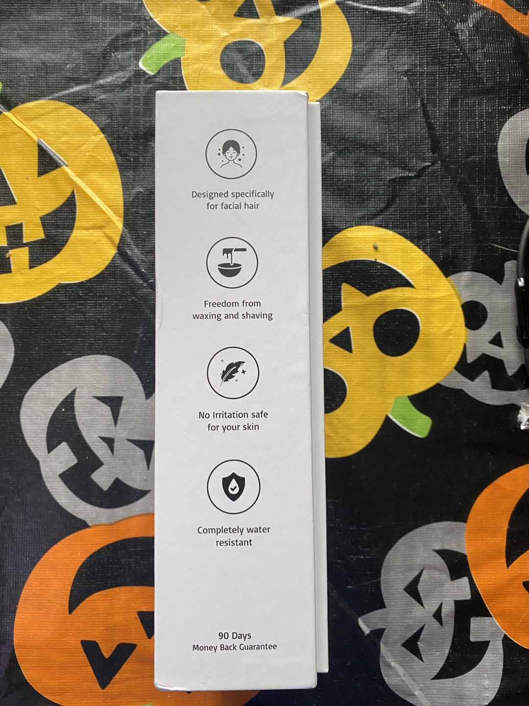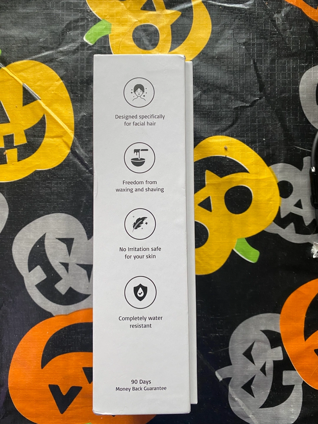 Facial hair remover, comes with a cleaning brush and a charging cable. Water resistant. In original packaging.