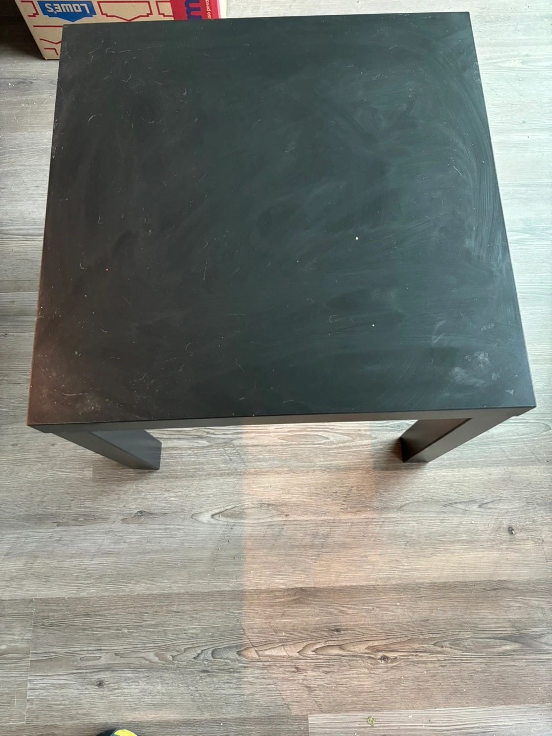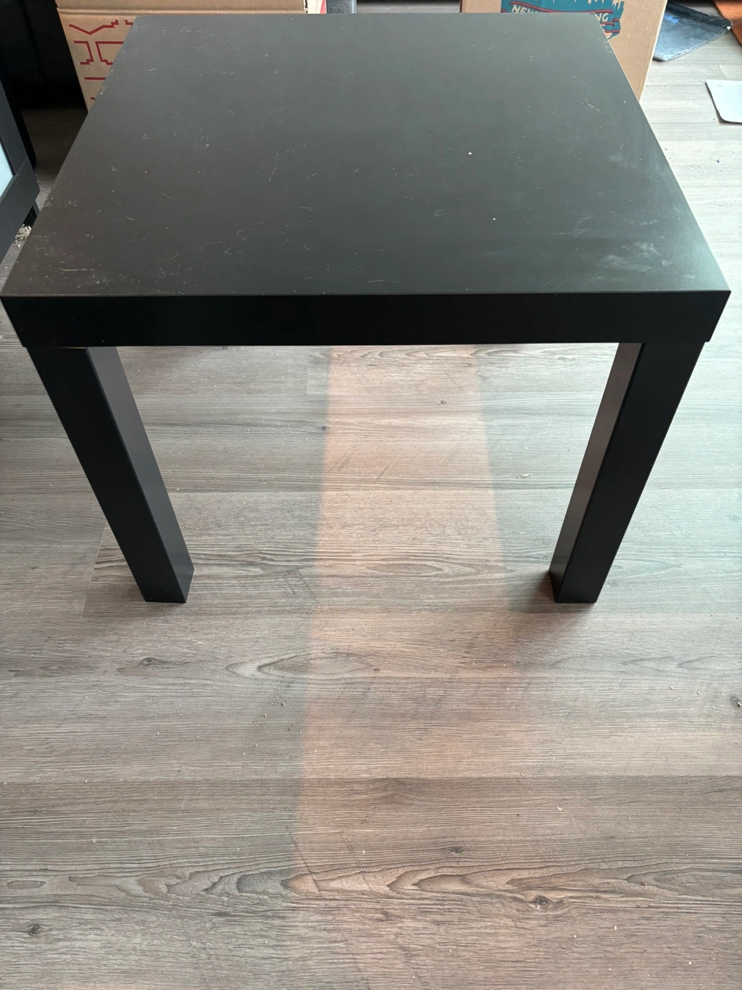 LAST MINUTE GIVEWAY. Ikea small black end table with square top. Good condition. Legs unscrew, easy to transport. PICKUP TUESDAY Night, 10/12 at precise time.