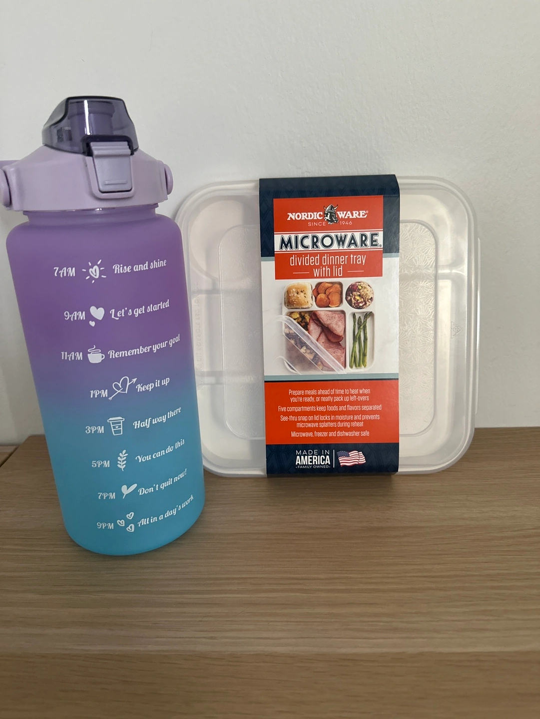 Meal prep container and water bottle