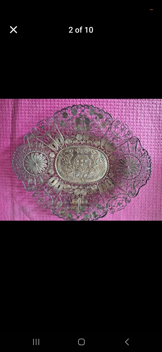 Antique Chinese Silver Filigree Serving Dish with Serving Spoon