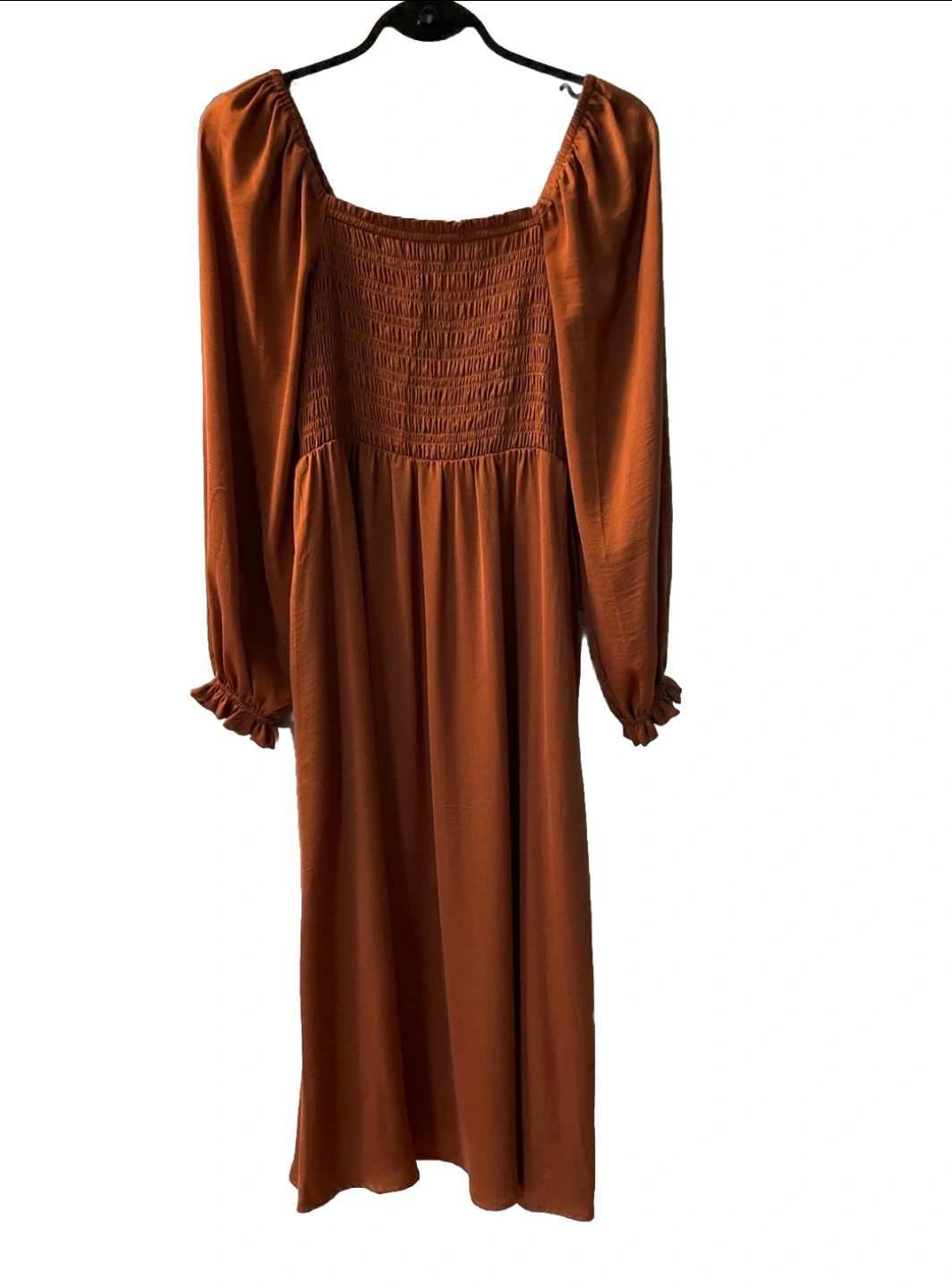 Long-sleeved dress with a square neckline and puff sleeves. Smocked bodice and a flowing skirt. Very comfortable and can be worn on or off the shoulder. From The Gap. Size XS. Fits XS or small.