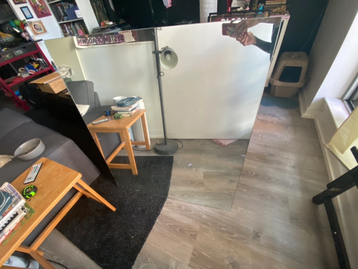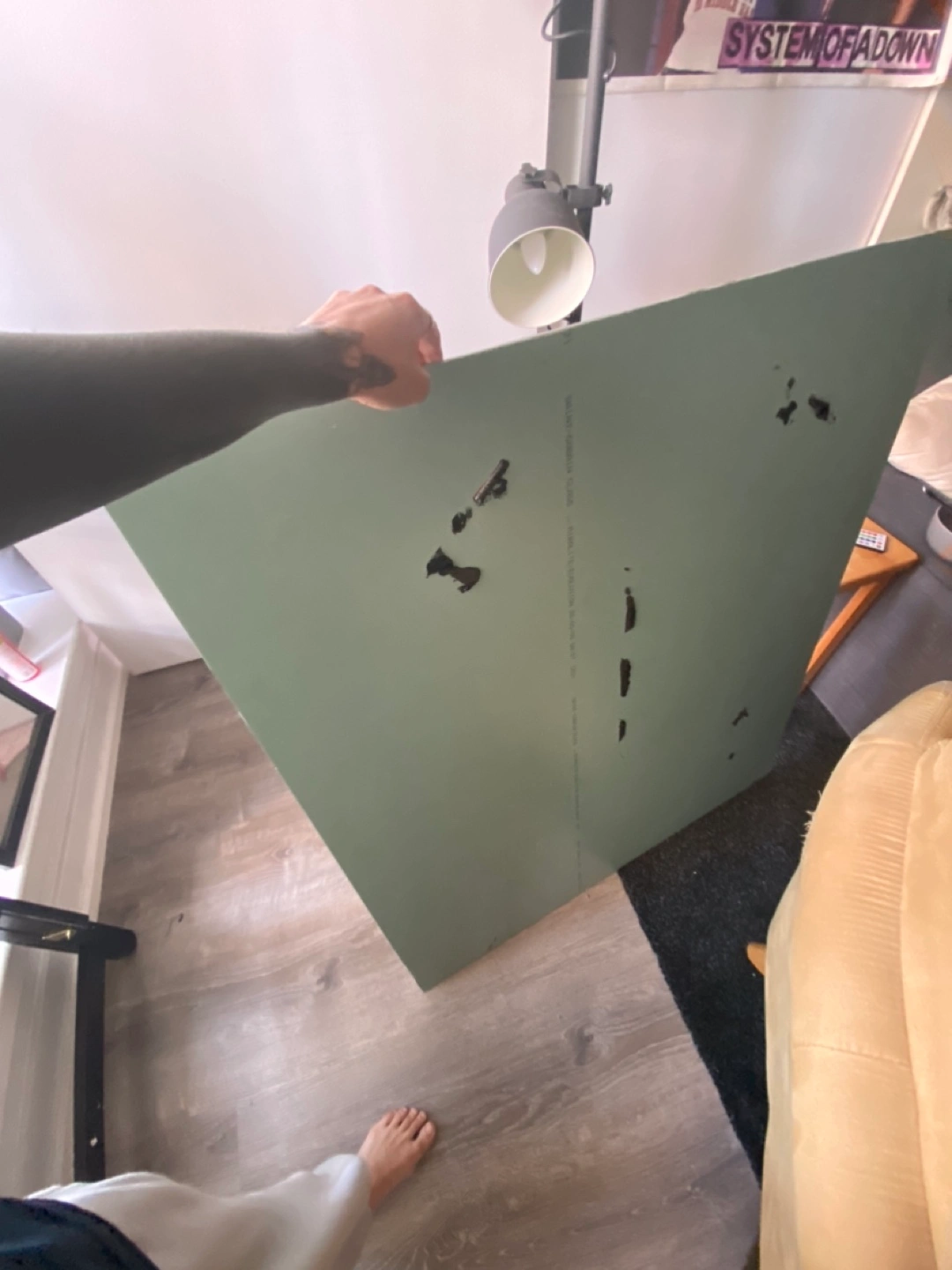 Has some paint splatters on the front and glue on the back but can be washed off.