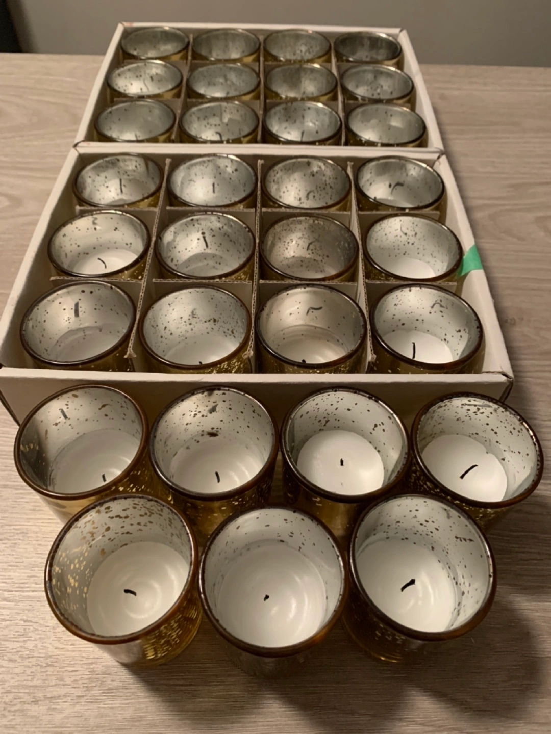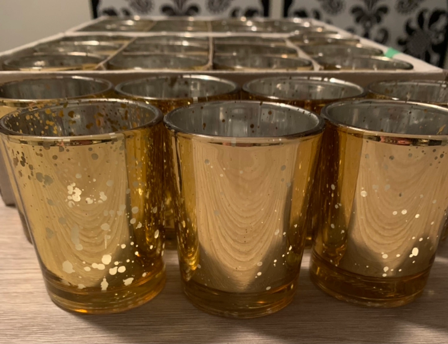Set of 31 gold votive candle holders. Great for weddings, parties, or everyday decor.
