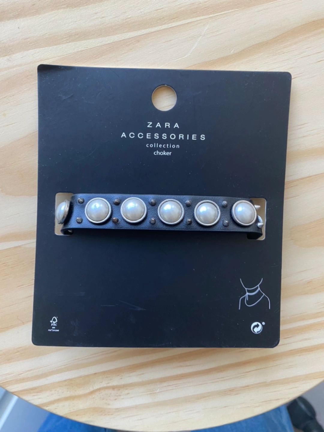 Black faux leather choker with pearl detailing. Size M. Never worn.